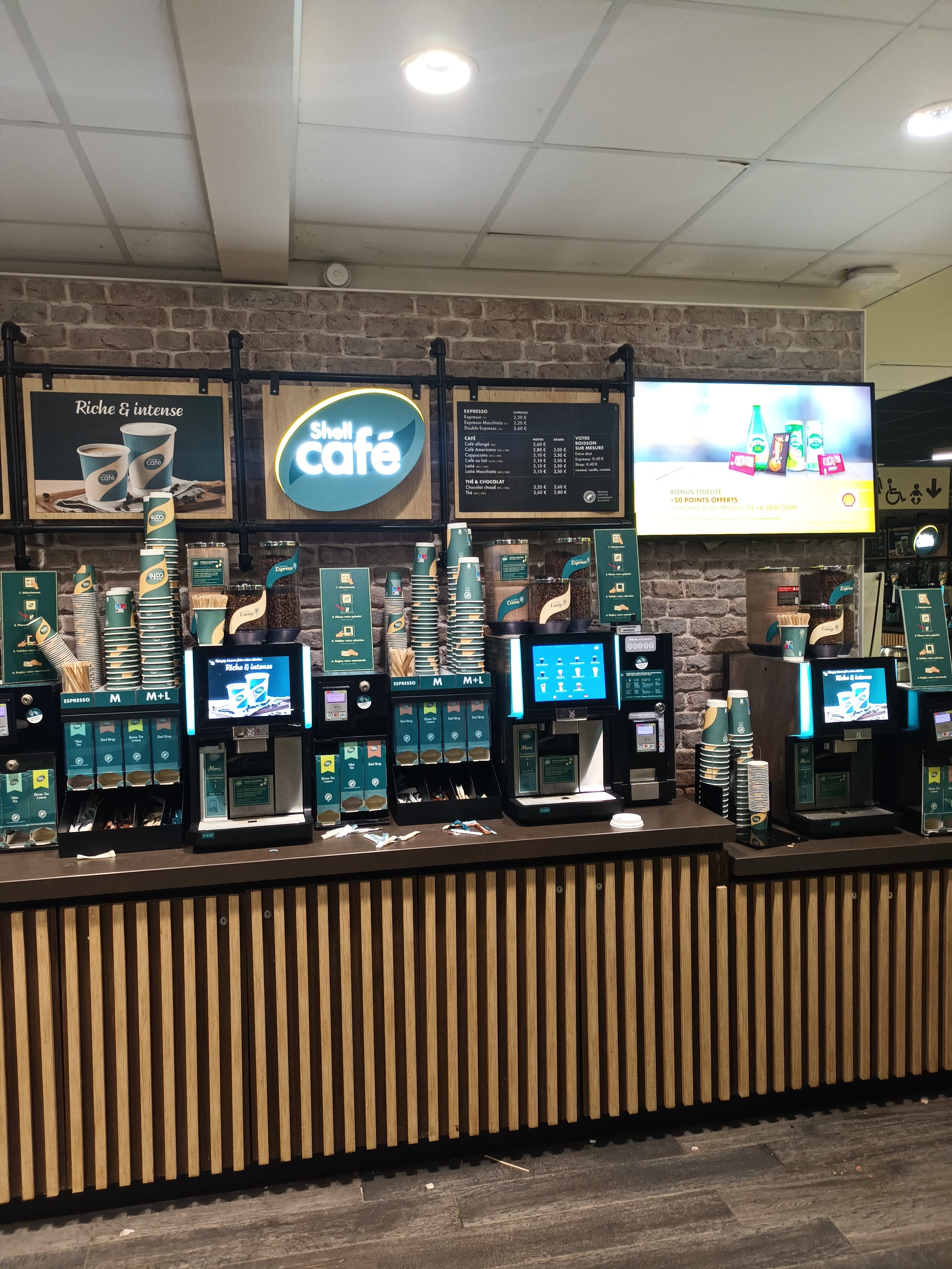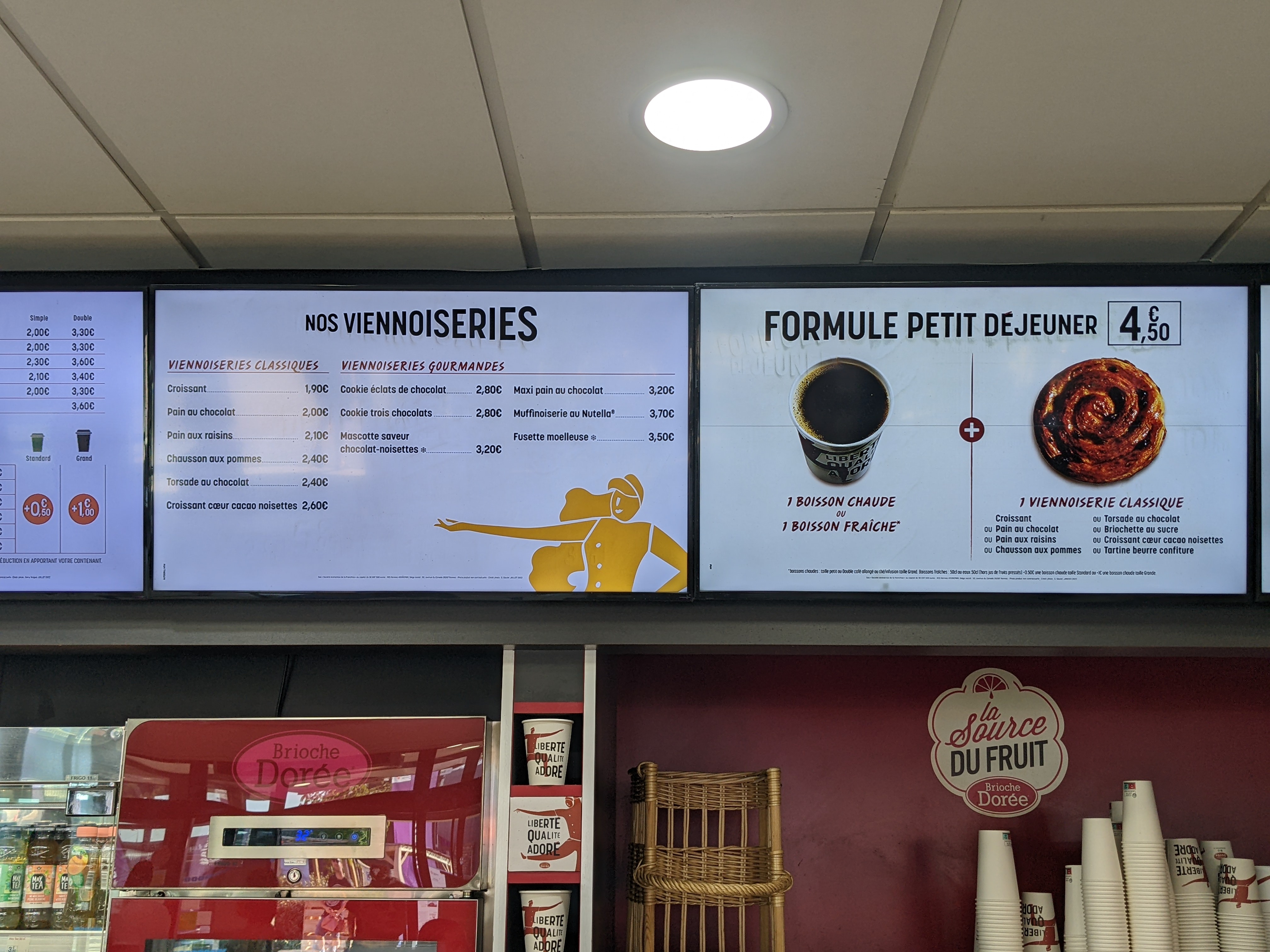 On vous propose une formule petit déjeuner boisson chaude et viennoiserie et en fait un simple café allongé (qui est au même prix qu'un expresso) n'est pas pris en compte. De la publicité mensongère tout simplement. Et au passage 0,20 facturés en plus. Pour une personne c'est rien, mais multiplié par plusieurs passages c'est très lucratif. En fait du vol tout simplement. A fuir...