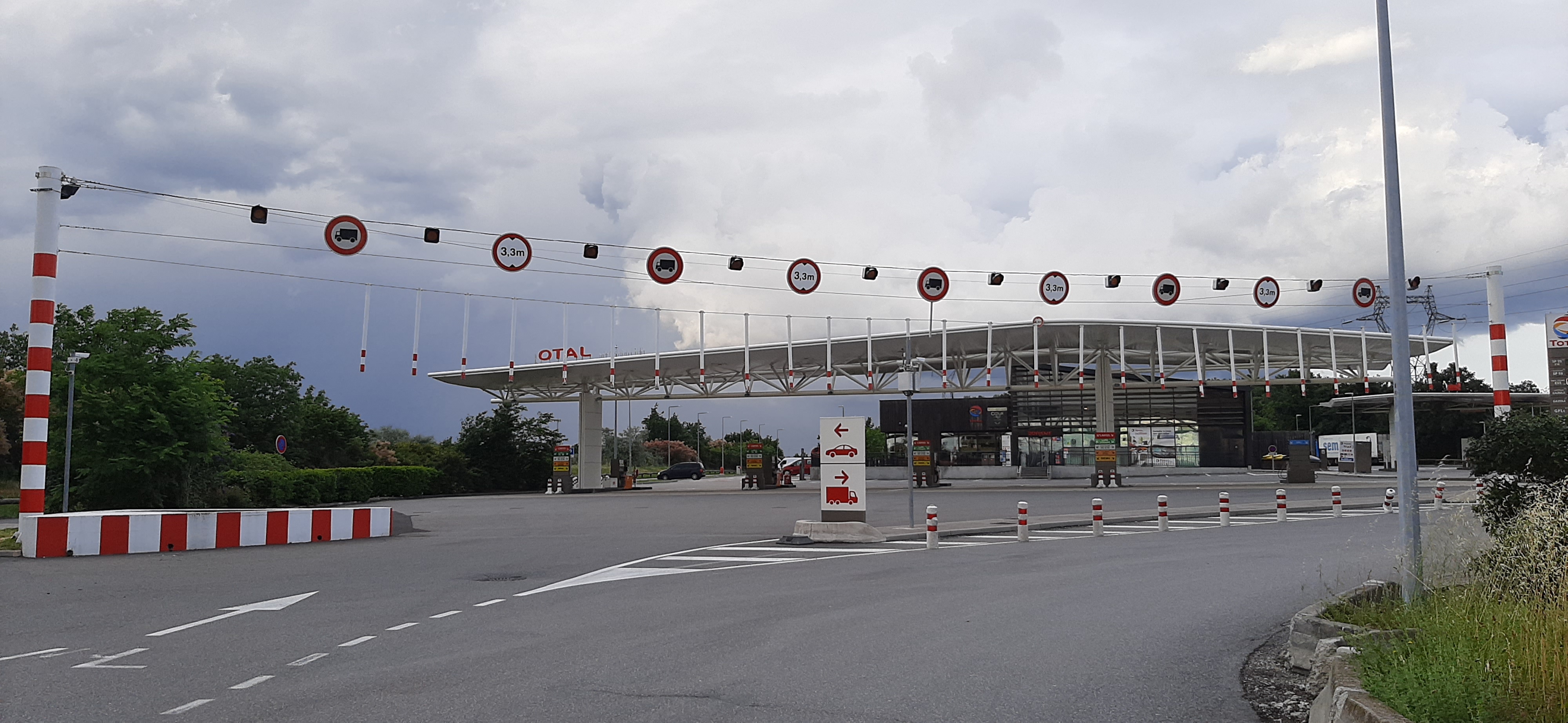 Zone avec parking pour camions, station-service, magasin et restaurant, avec douches pour camionneurs et très bon traitement.