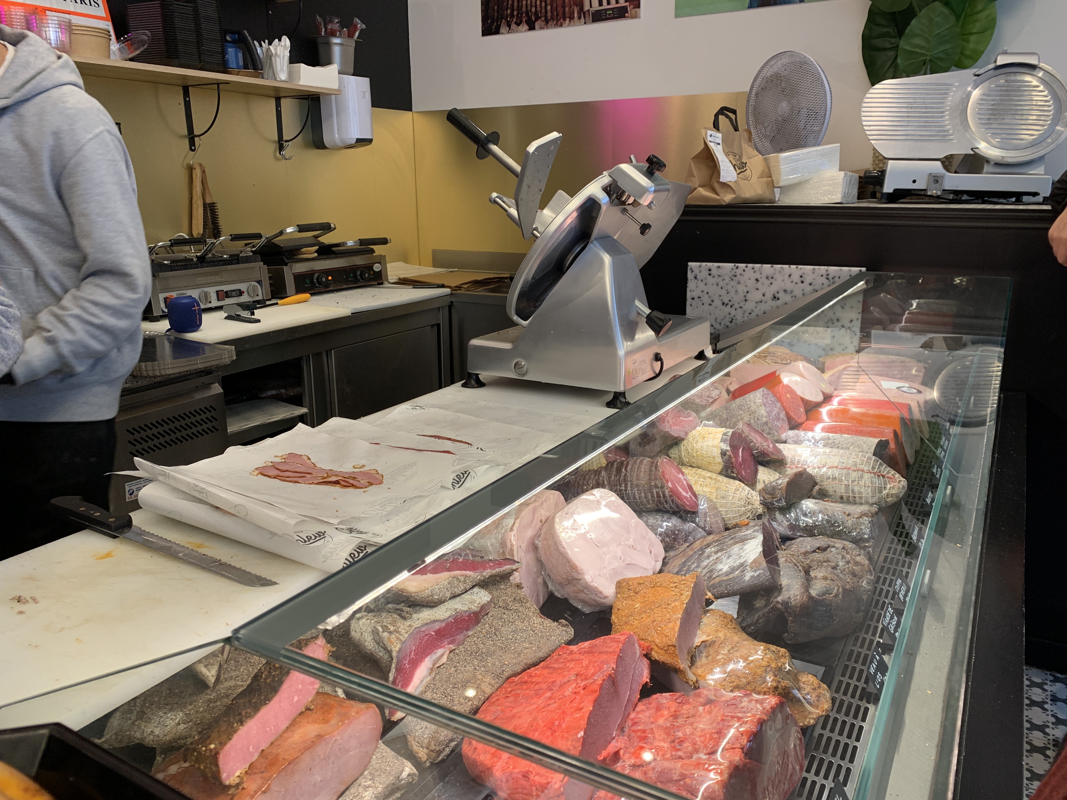 Des sandwichs très copieux et pas très chers mais pas supers bons non plus. Beaucoup de sauce, de viande mais pas fou. Charcuteries au détail très chères et inégales en gout. Le pastrami cru est excellent, les charcuteries sèches ne sont pas assez vieillies et les charcuteries cuites sont...humides