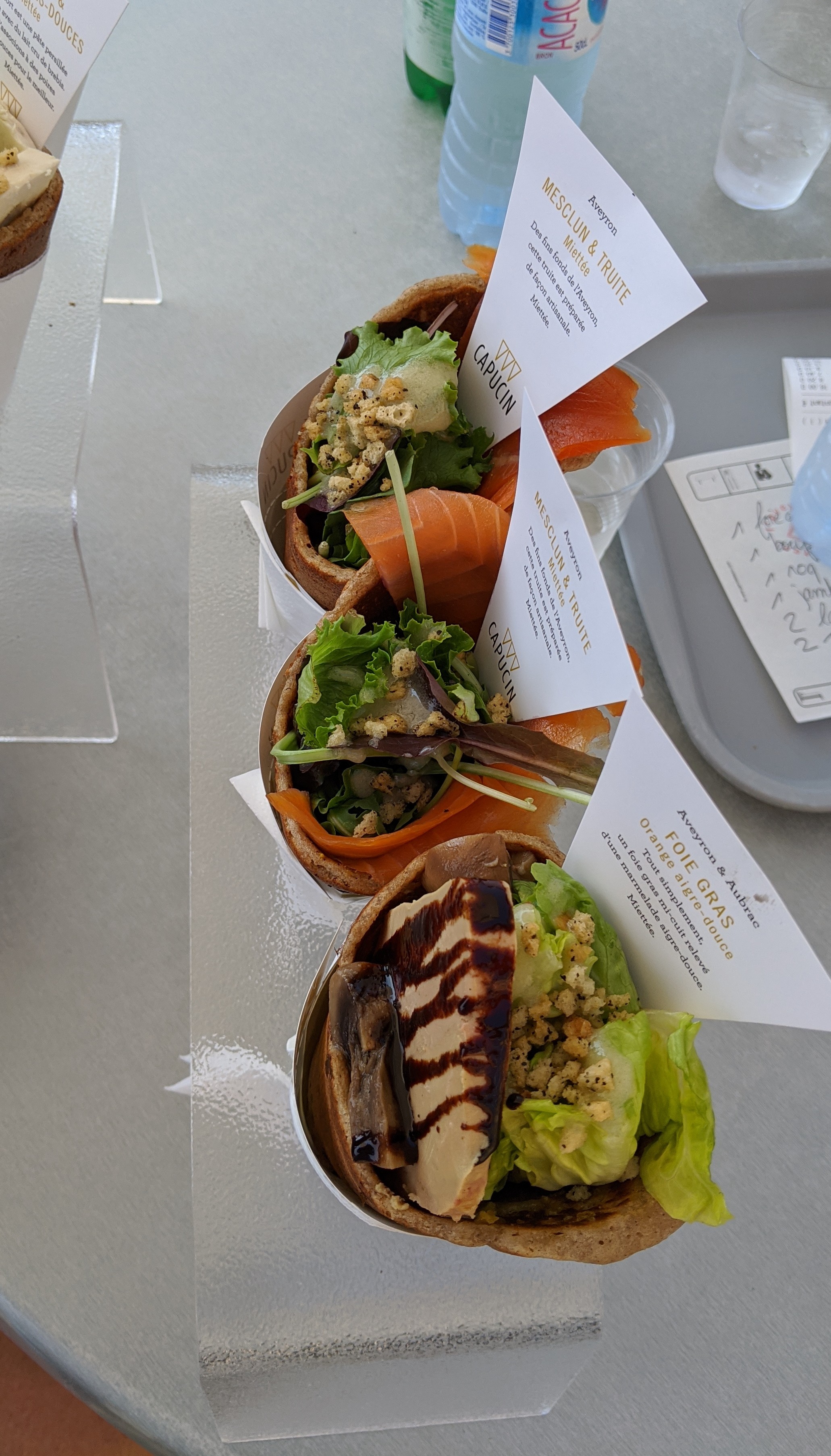 L'espace gourmand qui se trouve sur l'aire de repos du viaduc du Millau propose des capucins (une sorte de gaufre avec des produits régionaux et frais), un régal pour les papilles....