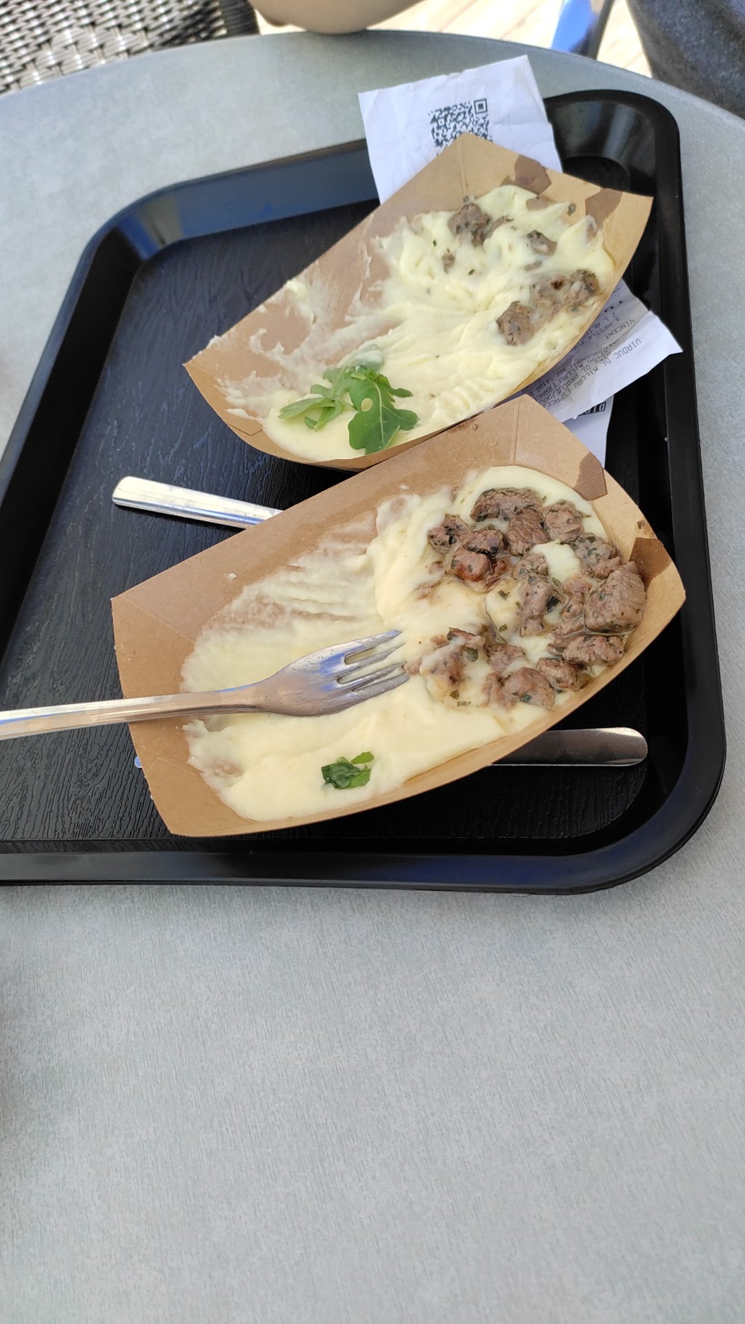 Je suis très déçu par rapport à l'année dernière c'est devenu très pour ce qu'il nous servent une petite barquette pour 14euros l'année dernière il servait dans un cornet comme une glace c'était meilleur que dans une toute petite barquette.ce sera mon dernier arrêt