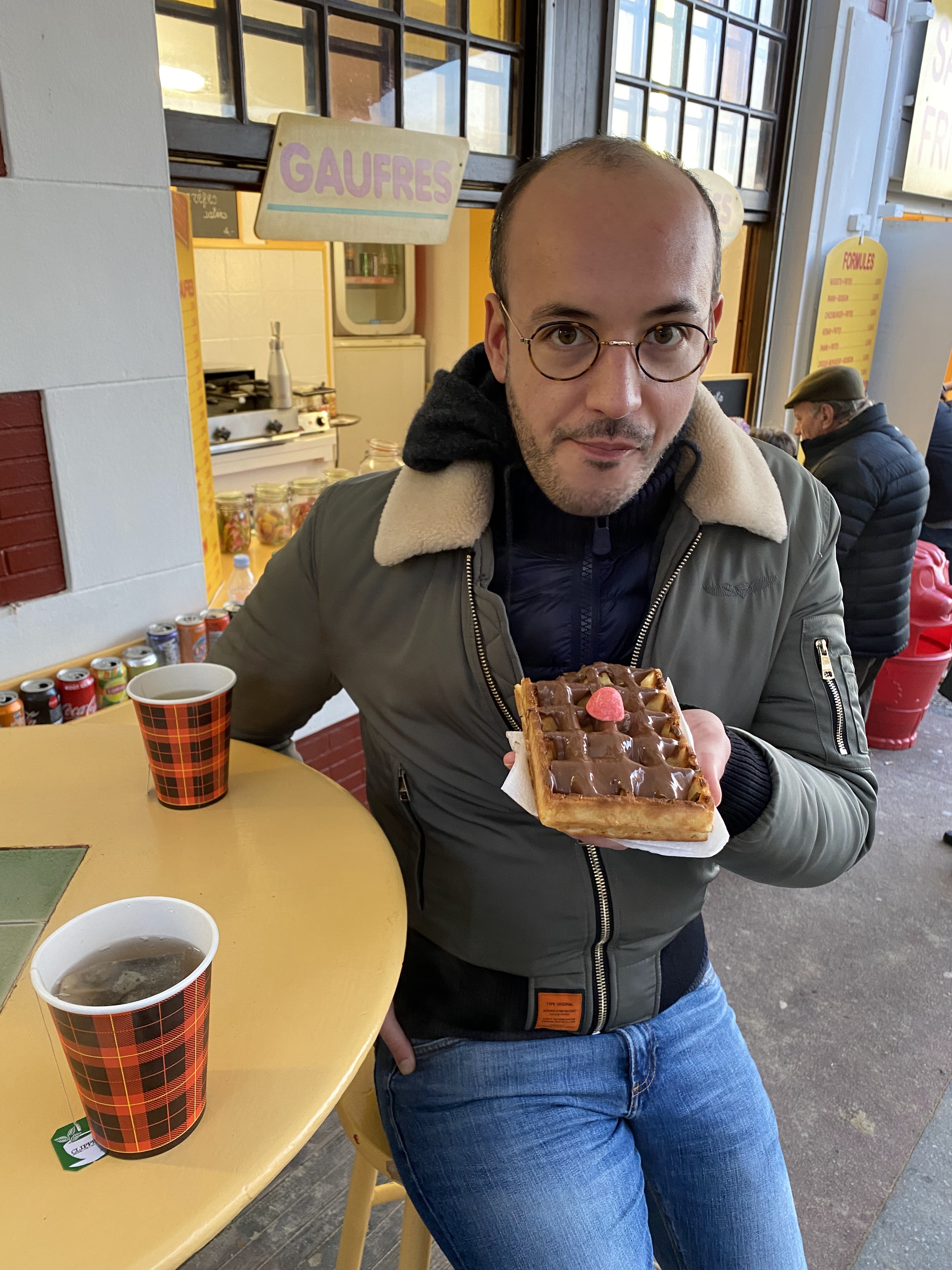 Avons déjeuné debout 2 tabourets à l'extérieur (occupés )pour 3 mange Debout Alors qu'il y a 7 tabourets rangés à l'intérieur Cherchez l'erreur !!!!