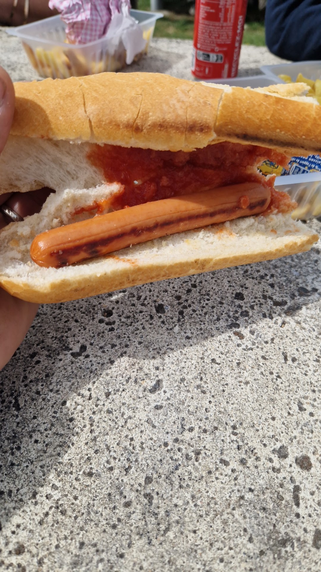 Dommage que le sandwich se résume à du pain décongeler et 2 saucisses knaki dedans avec une lichette de ketchup. pour 5.50e De la salade, des oignons serait un plus. pas de cabine de toilette et rien pour se laver les mains. et en plus la carte bancaire n'est pas acceptée. Je préfère ma boulangerie où je mange pour 3.50€ un sandwich pain frais au vrai morceau de poulet, tomate, salade. Là c'est juste pour se faire du fric. Franchement j'aurai su j'aurai emporté mon pique nique et j'aurai mieux manger.