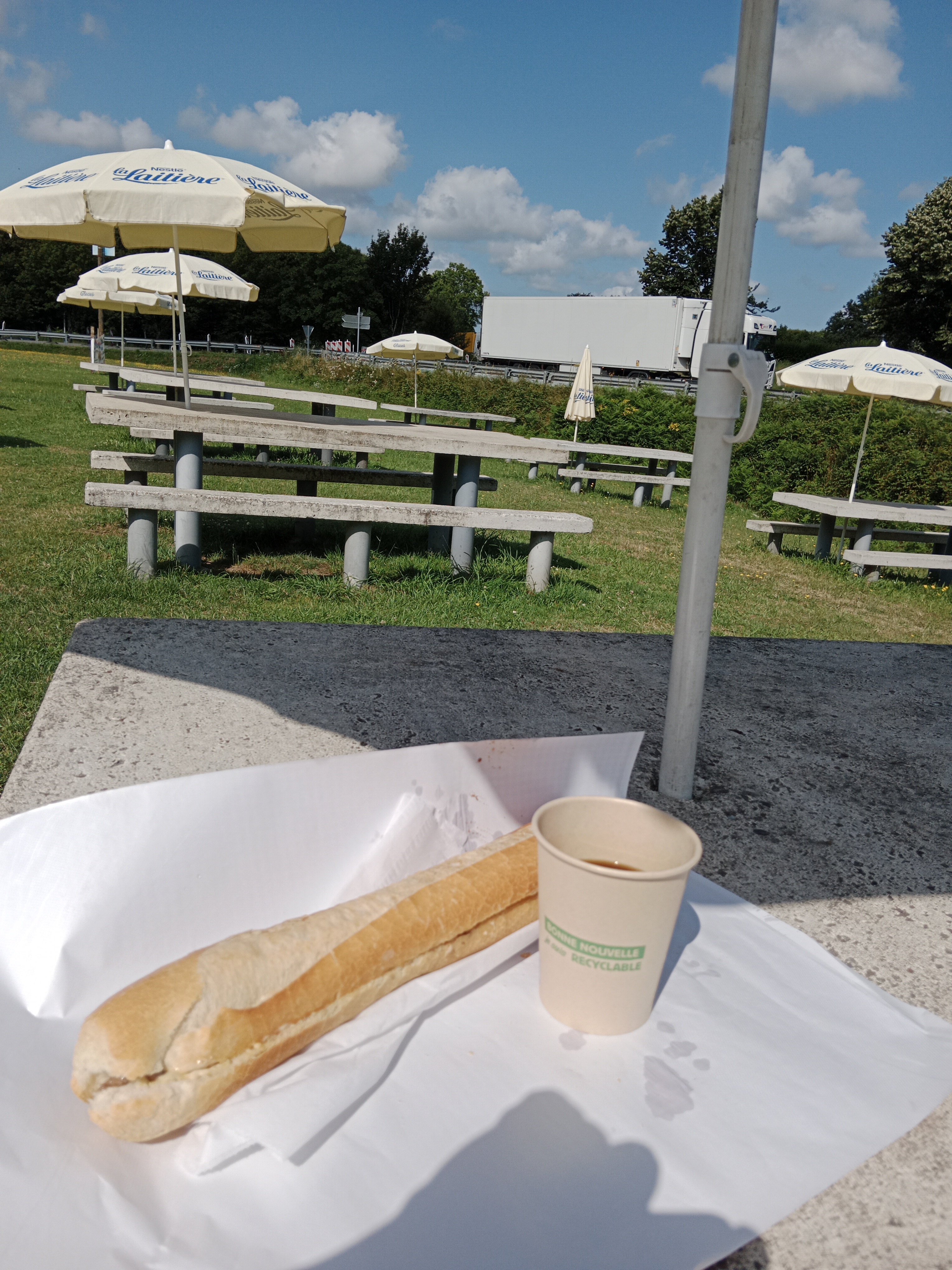 Comme beaucoup j'aurais dû lire les avis avant de m'arrêter. Accueil froid, tout est cher , sandwich jambon beurre 5€ , pas de salade ou de tomates dans les sandwichs, moyenne frites 4€, sandwich saucisse ( de Strasbourg) 5€50. Ketchup et mayonnaise sont en supplément 1€ Un conseil fuyez !! Tout est fait pour faire du business, pas du commerce. Il vaut mieux prévoir un pique nique que de s'arrêter là .