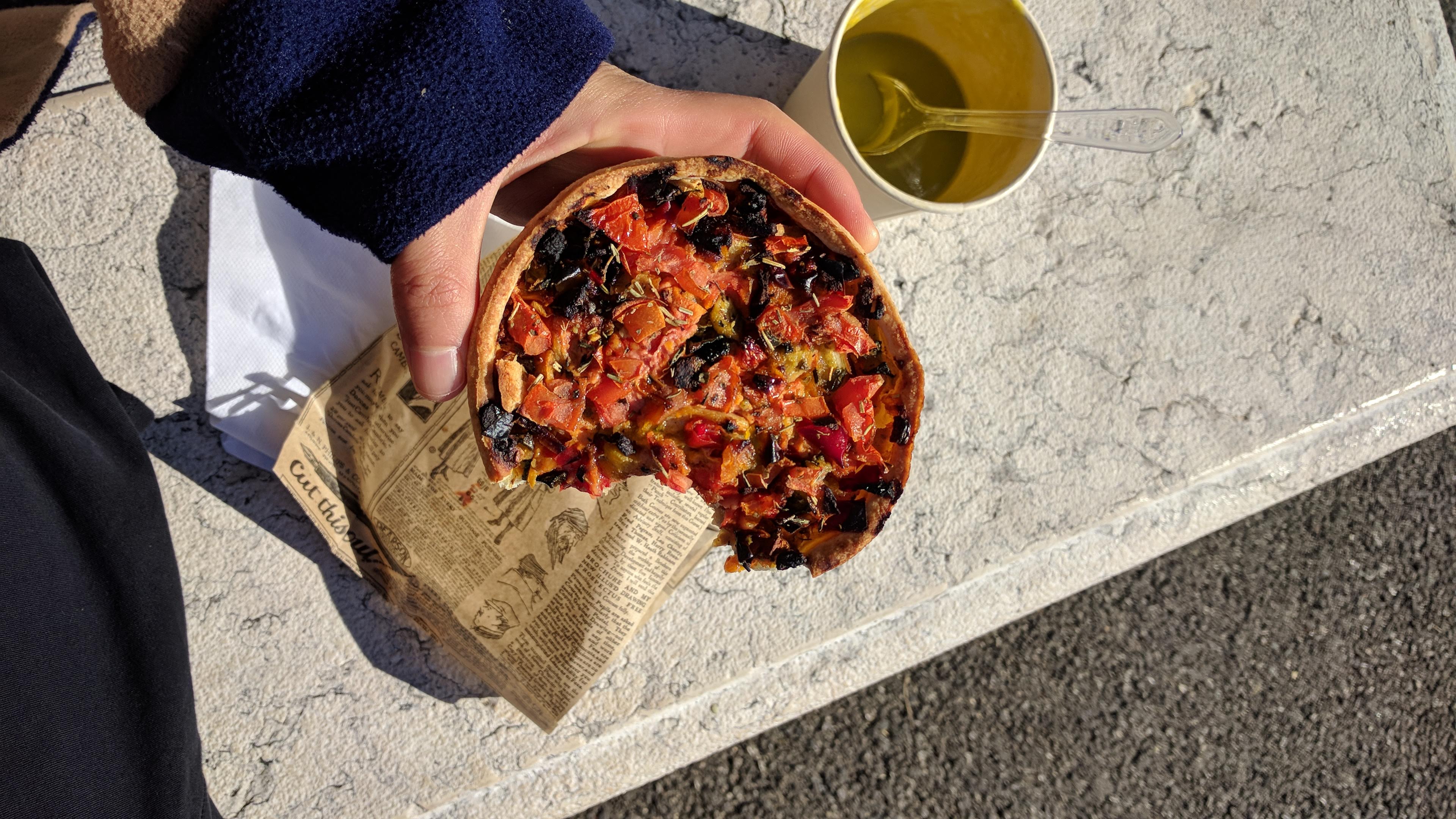 Une adresse sympa pour manger un morceau rapide et relativement abordable à Saint-Paul-de-Vence. J'ai été agréablement surpris de voir une quiche végétalienne, qui était délicieuse. La soupe du jour était bonne aussi. C'était un peu cher pour ce que j'ai eu, mais il fallait s'y attendre dans un village touristique perché.