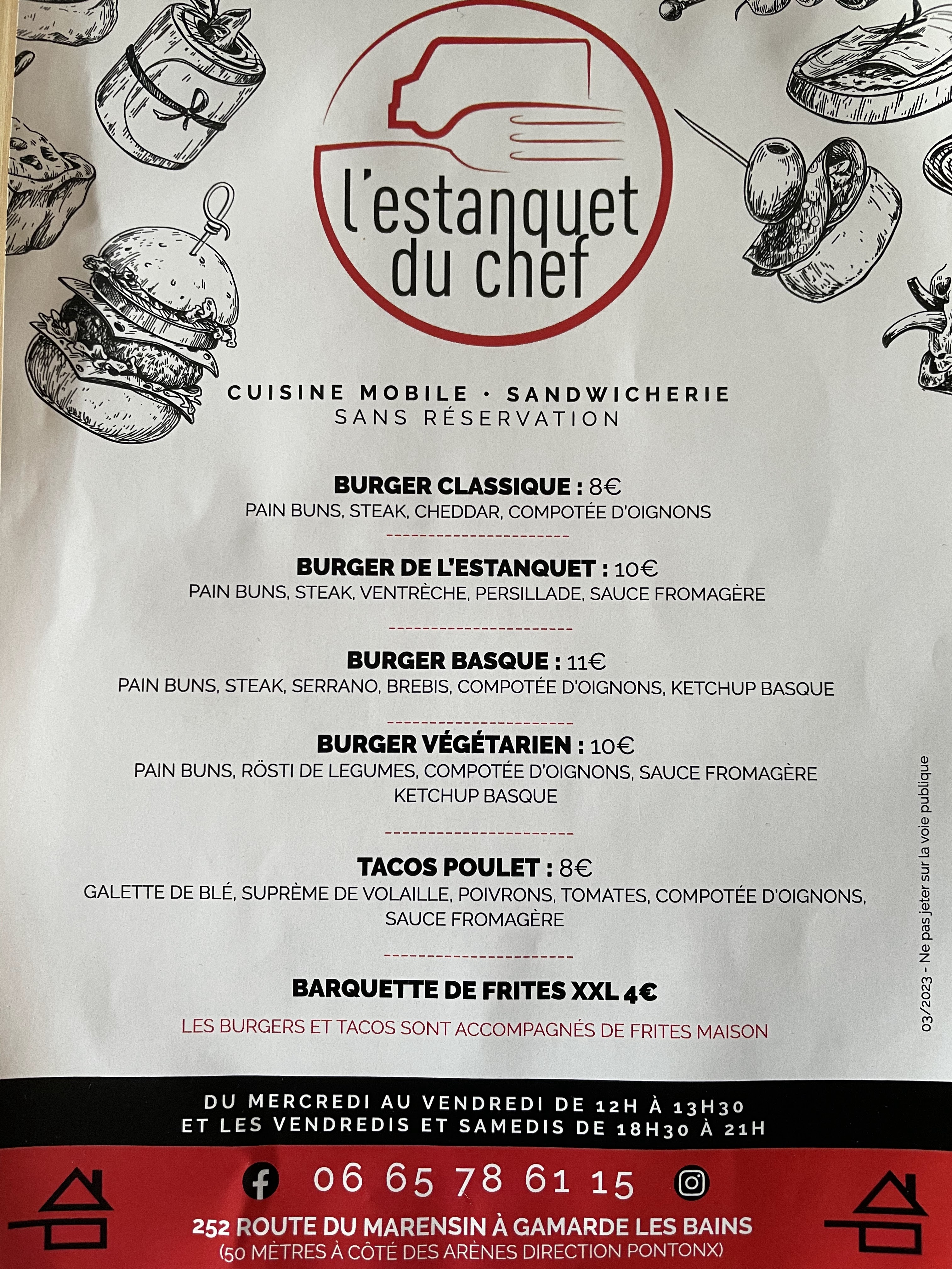 Voici toutes les informations sur le Sandwicherie L'Estanquet du Chef qui ce trouve au 252 Rte du Marensin, 40380 Gamarde-les-Bains (40). Sur cette fiche vous trouverez les photos, l'adresse, les horaires d'ouverture, le numero de téléphone et les avis clients.Vous pouvez églement rédiger un avis si vous le souhaitez en bas de page.