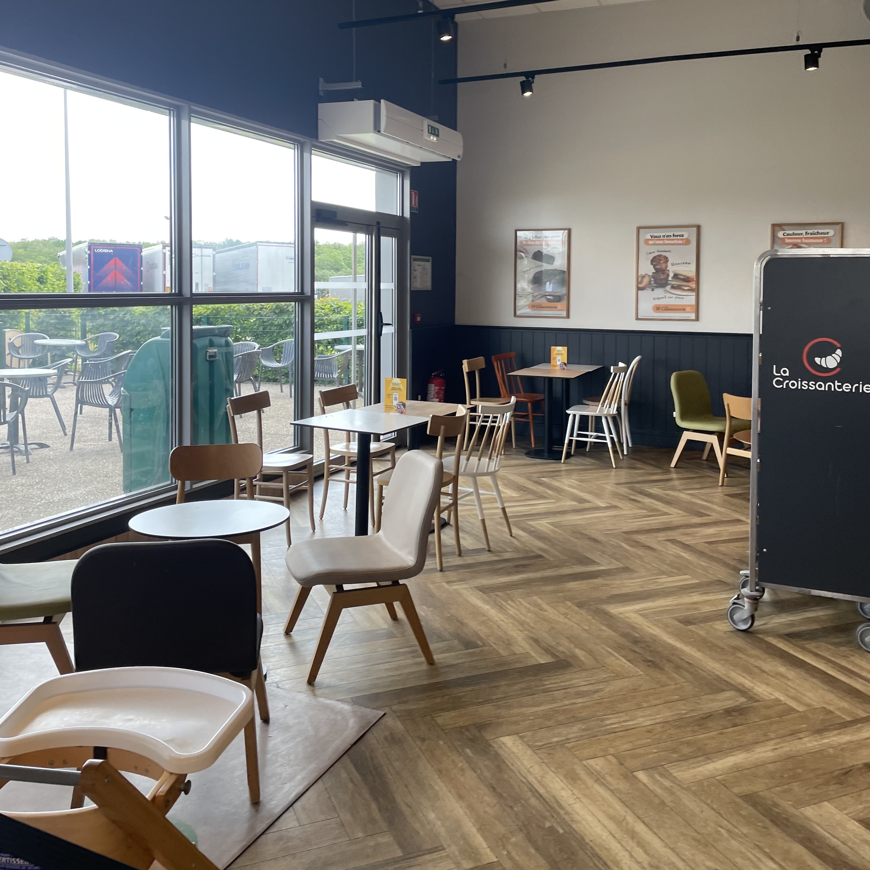 Je donne une étoile car c'est obliger. On arrive à la croissanterie avec 4 enfants (10, 9, 8 ans et 6 mois), puis deux grands parents. On achète des sandwich pour espérer manger assis et pouvoir poser le cosy de mon bébé le temps de le nourrir. Un espèce est réservé à la clientèle de la croissanterie. Cet espace est fermé. Pourquoi ? On l'ignore, aucun affichage juste des barrieres noires en tissu de tirées. Je fais remarqué qu'il y a un couple avec deux enfants d'installé. L'employé me prend de haut en me disant que l'accès est ouvert pour nourrir un bébé !!! N'avait il pas vu le cosy que je portais à bout de bras ???? Mes parents âgés et diabétique sont restés derrières la banquette et on fini par manger debout ! Une video a été filmée, je la diffuserai. Endroit déplorable et honteux !!!!! A fuir