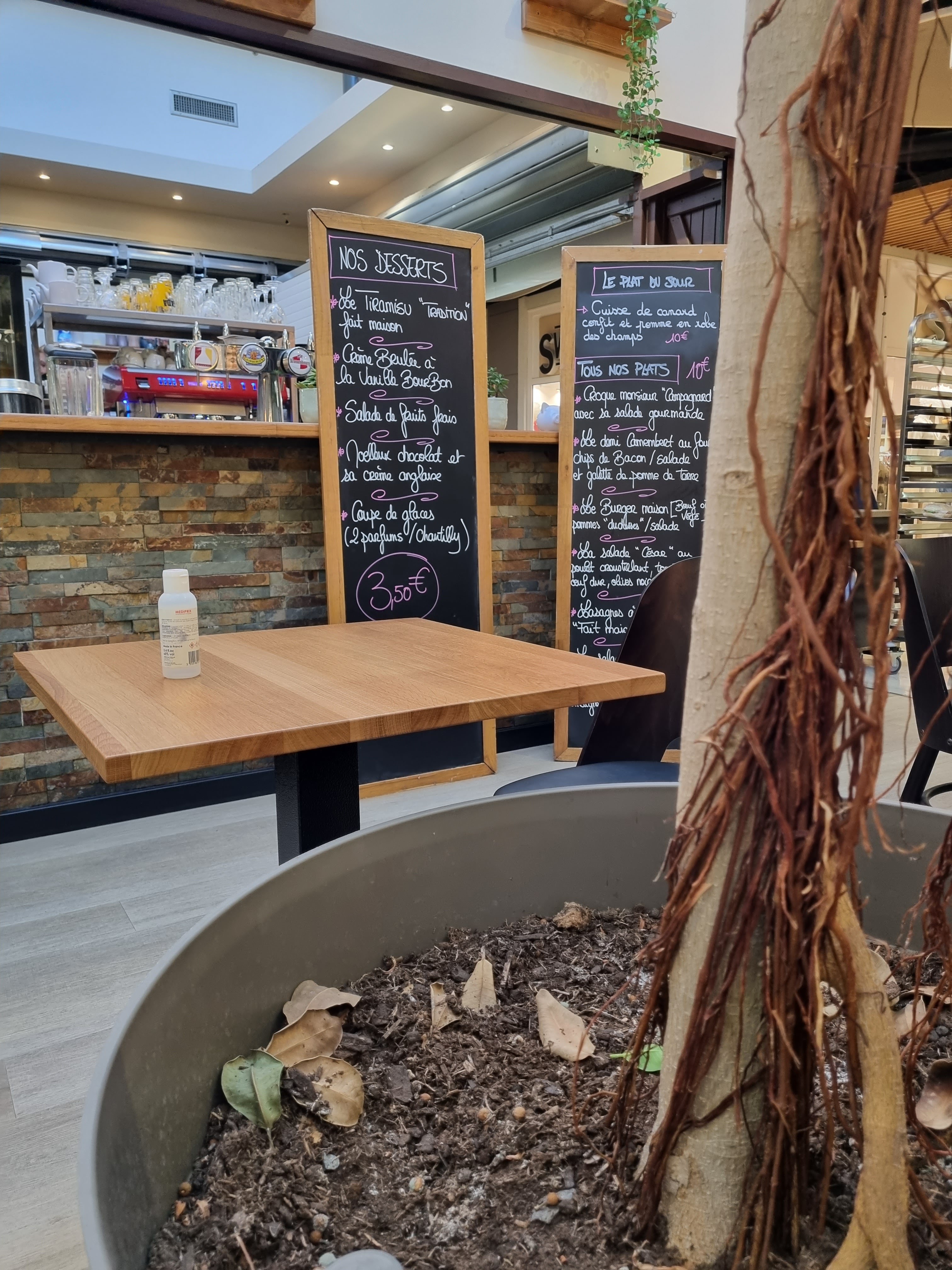 Accueil désagréable , nous avons voulu prendre 4 paninis sur place à 2 et un bébé de 10 mois , la réponse a été expéditive , froide et hautaine de la part de la responsable qui nous a dis soit c'est sur les tabourets( peu pratique avec poussette) ou rien sans plus d'explications , ni un sourire . Je déconseille vivement aux familles