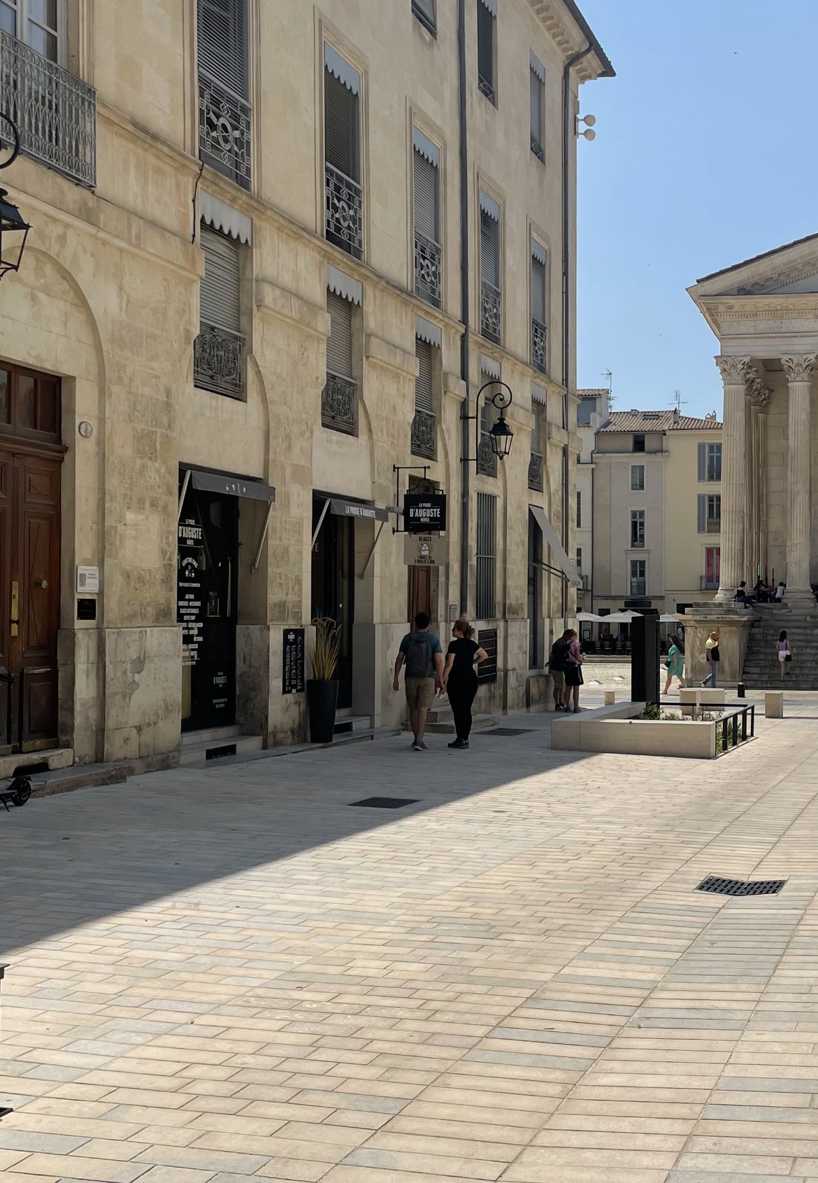 Trop bien la petite pause d’Auguste en face la Maison Carrée et Anatolia, mes deux monuments préférés