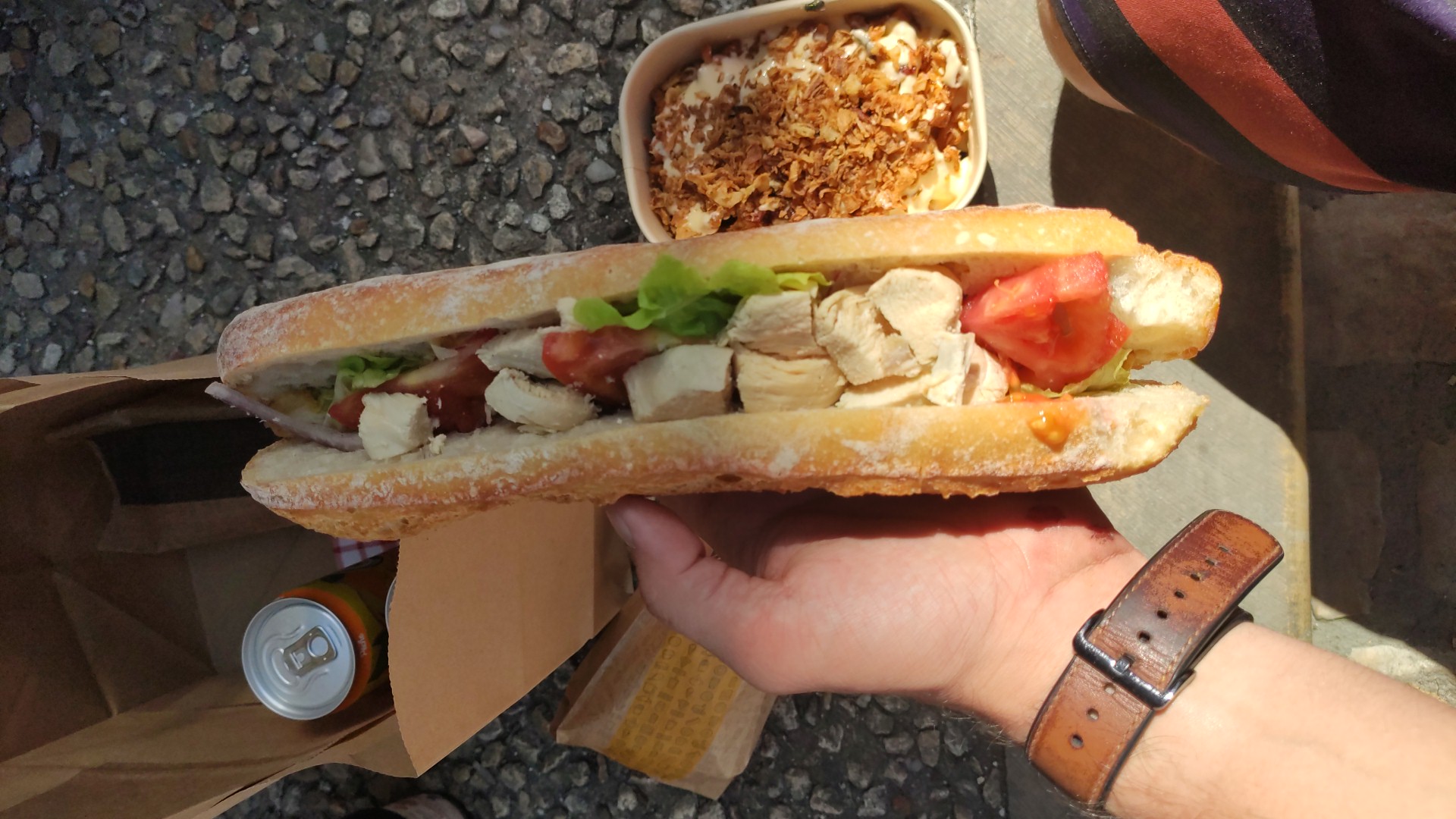 Bien que le sandwich soit censé être fraîchement préparé, pain sec et garniture très frugale, même pas de beurre. Ne pas à recommander.