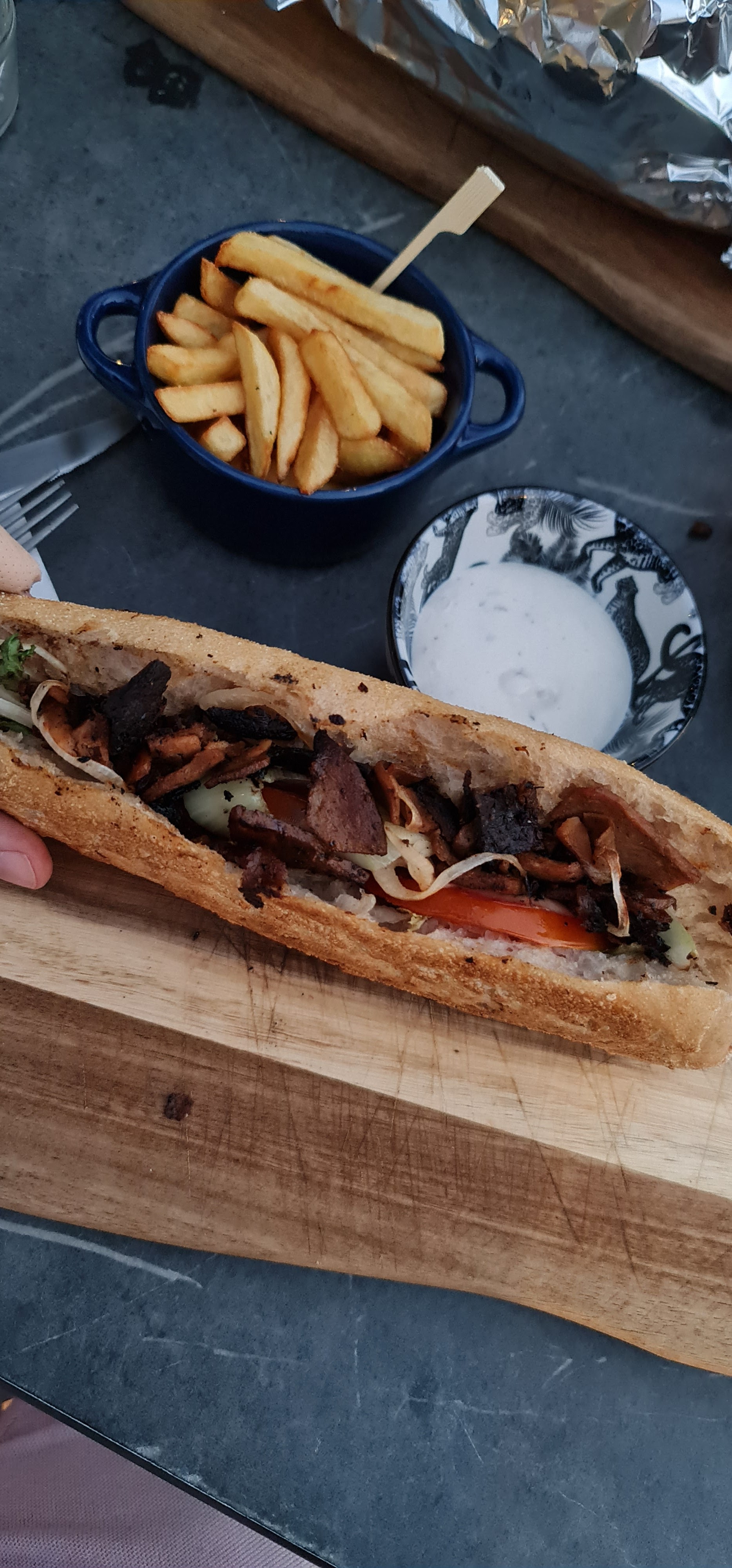CATASTROPHIQUE ! À FUIR ! - Viande kebab congelée - Quantité misérables - Oublis dans la commande (on est deux, on est sur place, il n'y a que 2 tables de prises) - Sert les plats d'une même table à 10 min d'intervalle - Réchauffe les plats avec les crudités - Hors de prix pour ce que c'est : 2 sandwichs misérables + 2 boissons = 25€ - Terrasse sans lumière - Demande aux clients de déplacer leur voiture parce que : la patronne arrive et elle se gare ici Pauvre clientèle.
