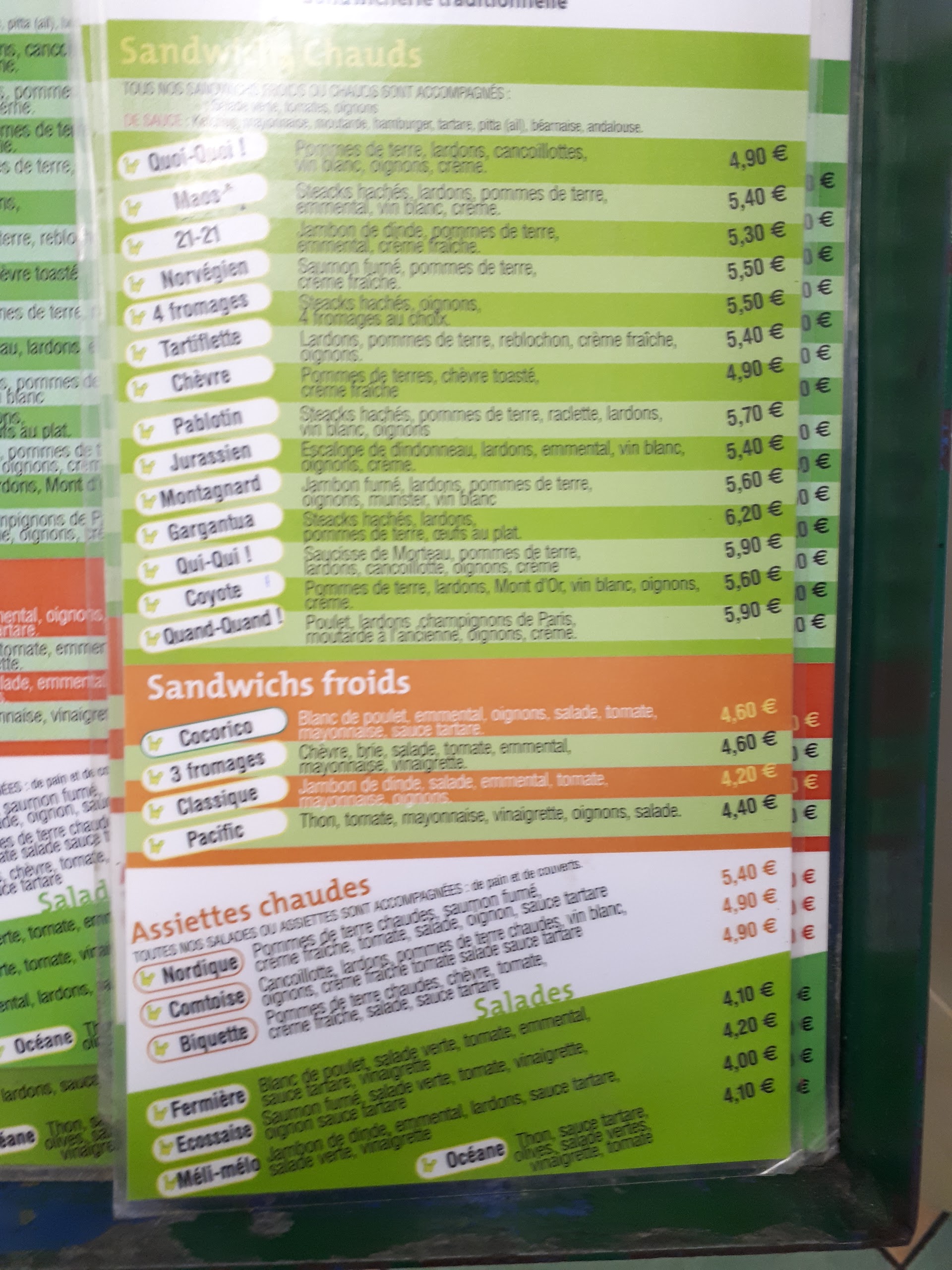 Il y a longtemps , même des années que je n'y étais pas allé . Toujours le même propriétaire , avec ces bon sandwichs bien de chez nous . Patates , fromage , saucisses de Morteau .... Si vous voulez essayer faites vite il arrête son activité bientôt . Et n'oublie pas Si tu as une petite faim.... Va au Pablotin .