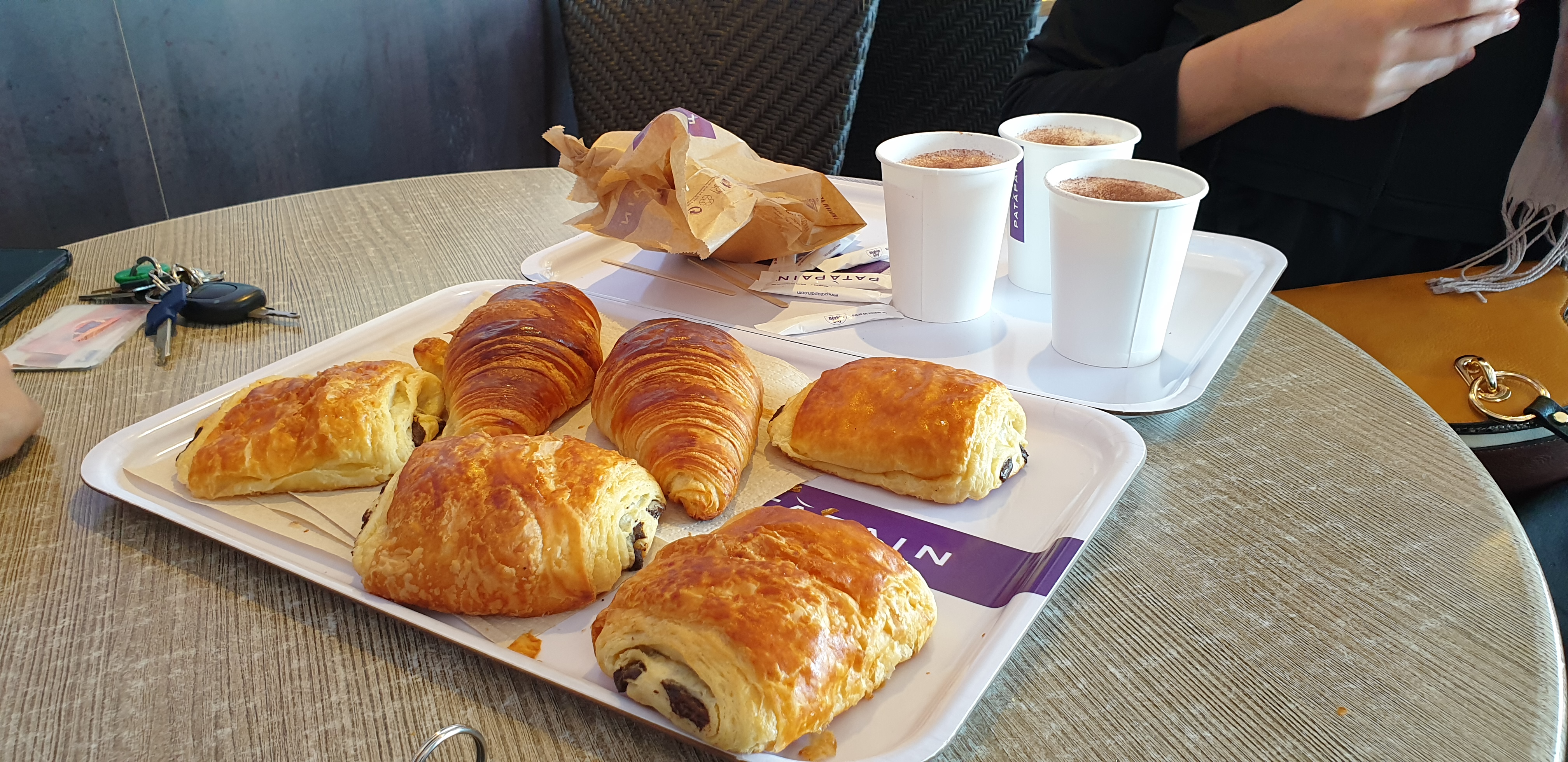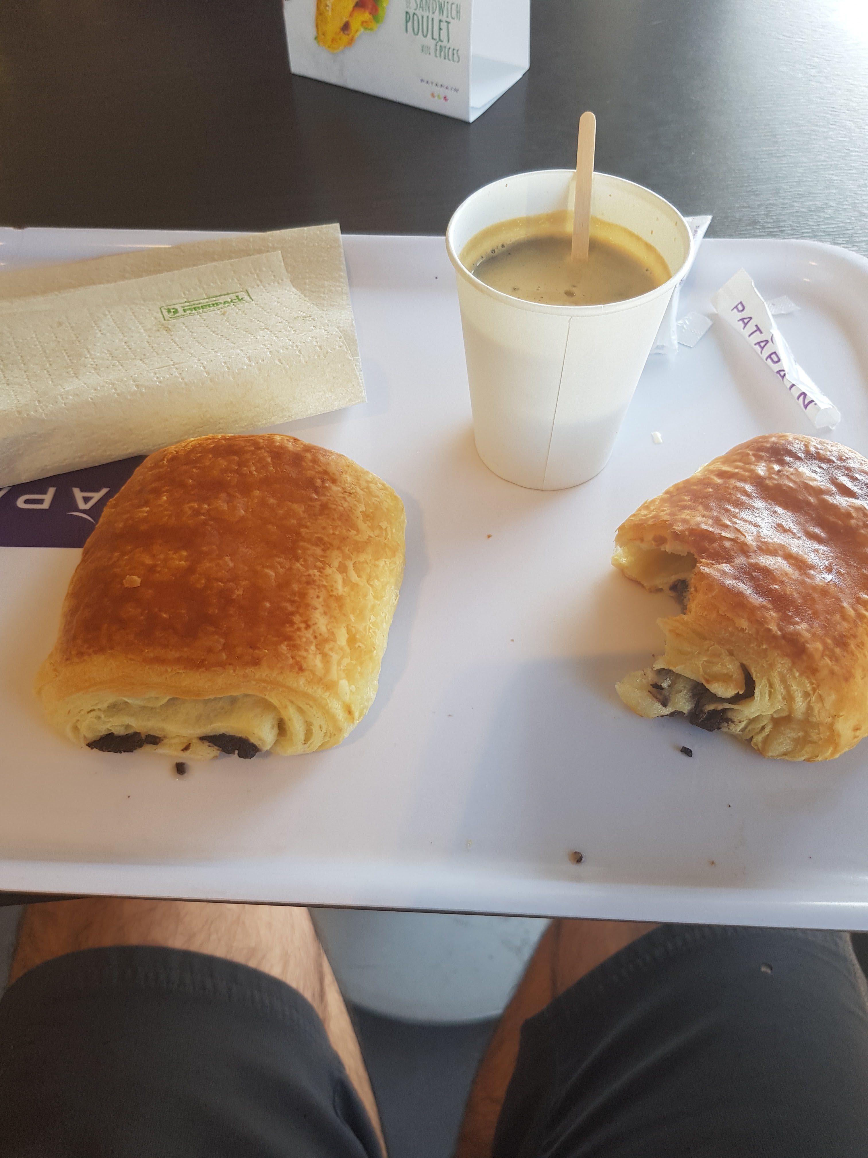 Très bons croissants j’ai pris un petit déjeuner nomade avec un café allongé. Équipe sympa merci