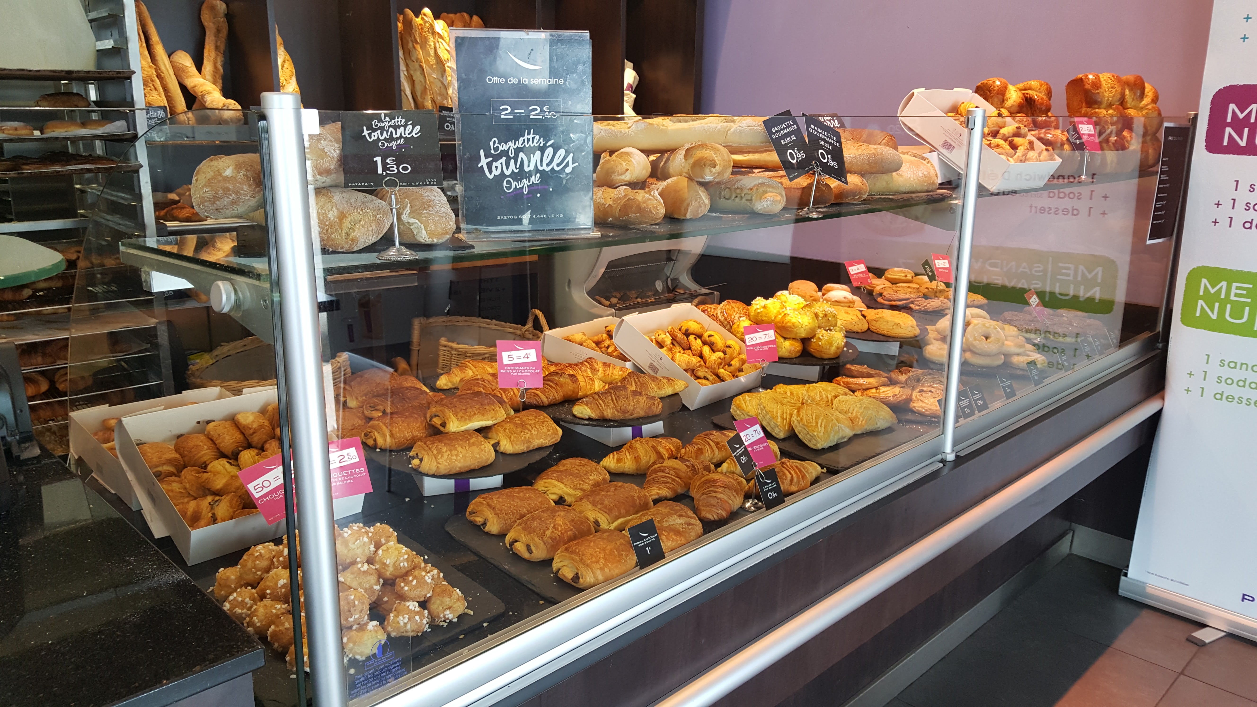 Bonne hygiène générale et bonne variété des sandwichs Quant au pain. Bof bof. On est très loin d'une vraie boulangerie. Le pain est bon et croustillant dans les heures immédiates mais le lendemain il est bon à jeter.