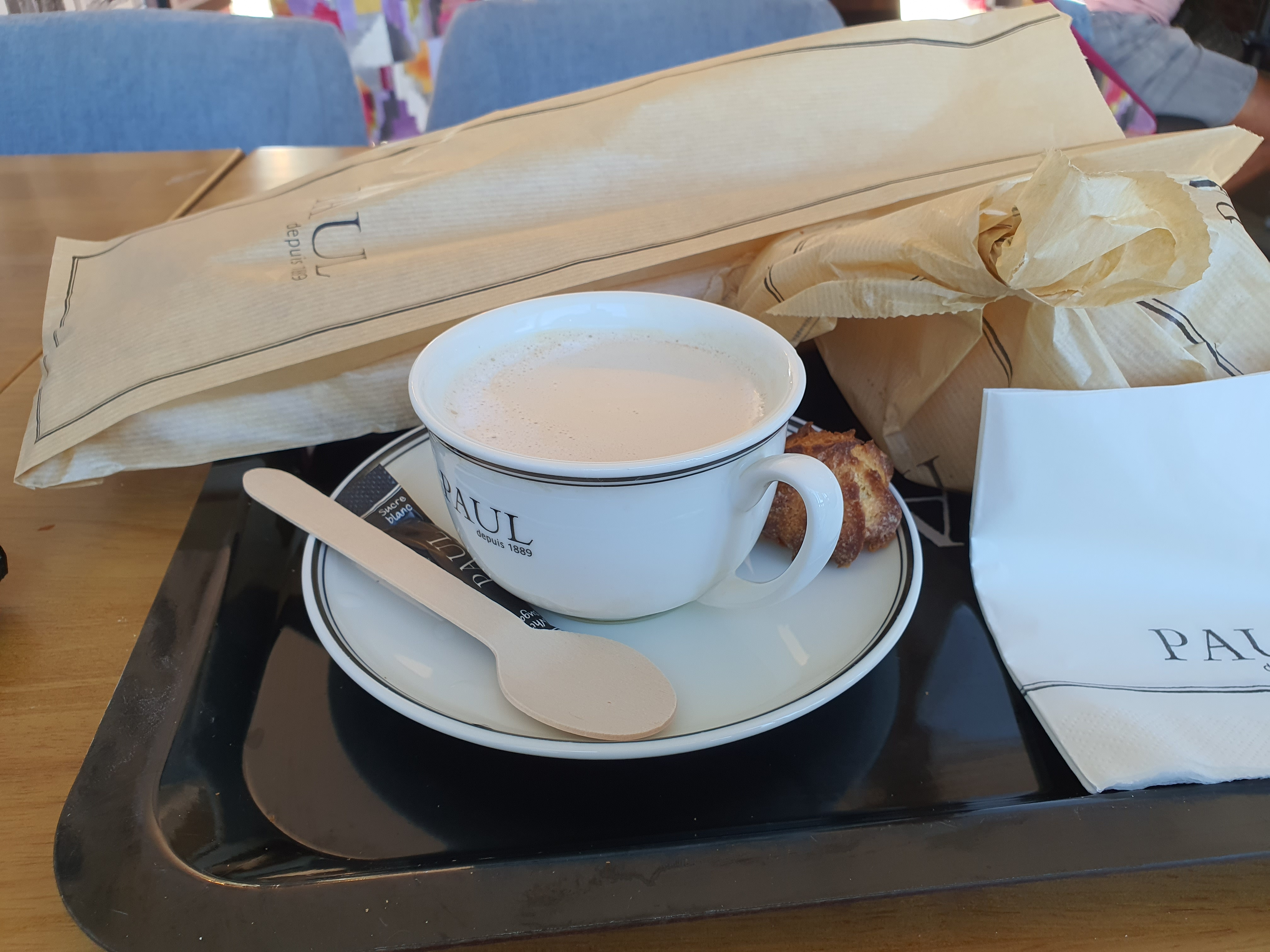 Quand je descends à Six Fours, j'ai pris l'habitude de prendre mon petit déjeuner chez PAUL. J'y suis bien servie, le personnel est avenant et mon pain au chocolat encore chaud. J'apprécie à la belle saison de boire ma maxi tasse de café dans la véranda. Au prochain frimas, ce sera dans la salle, au chaud.