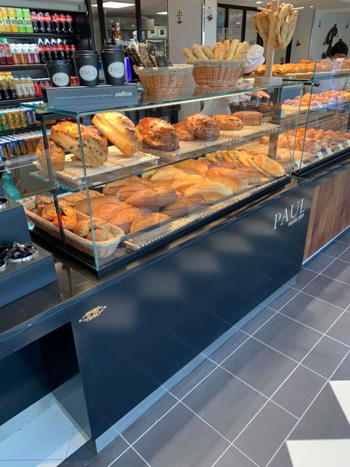Personnel adorable, serviable, souriant, compréhensif etc..., comme toujours, c'est très agréable de venir prendre son petit café ☕ dans cet endroit... Le pain 🍞 aux olives est excellent, comme beaucoup des pains Paul, il se garde facile. Nous pouvons stationner, c'est très important sur ici sur la côte.