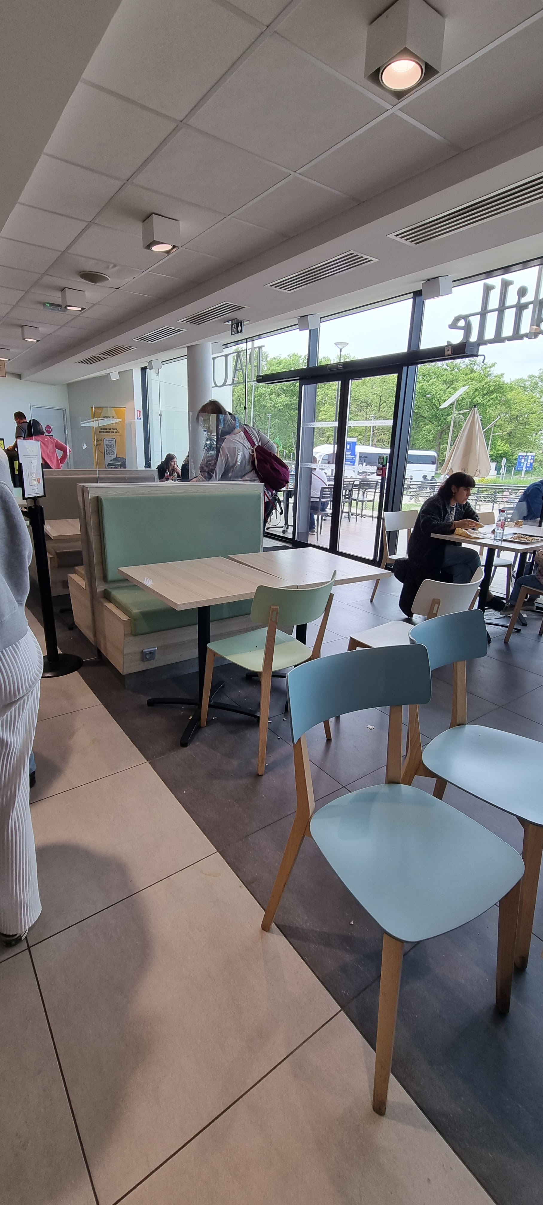Sale du sol aux chaises. Une caissière très gentille mais 2 autres personnes mal aimable au possible. En une heure de présence aucun nettoyage de table ni autre. Nous avons dû faire nous même le nettoyage de notre table et chaises avec notre gel hydroalcoolique ...A FUIR