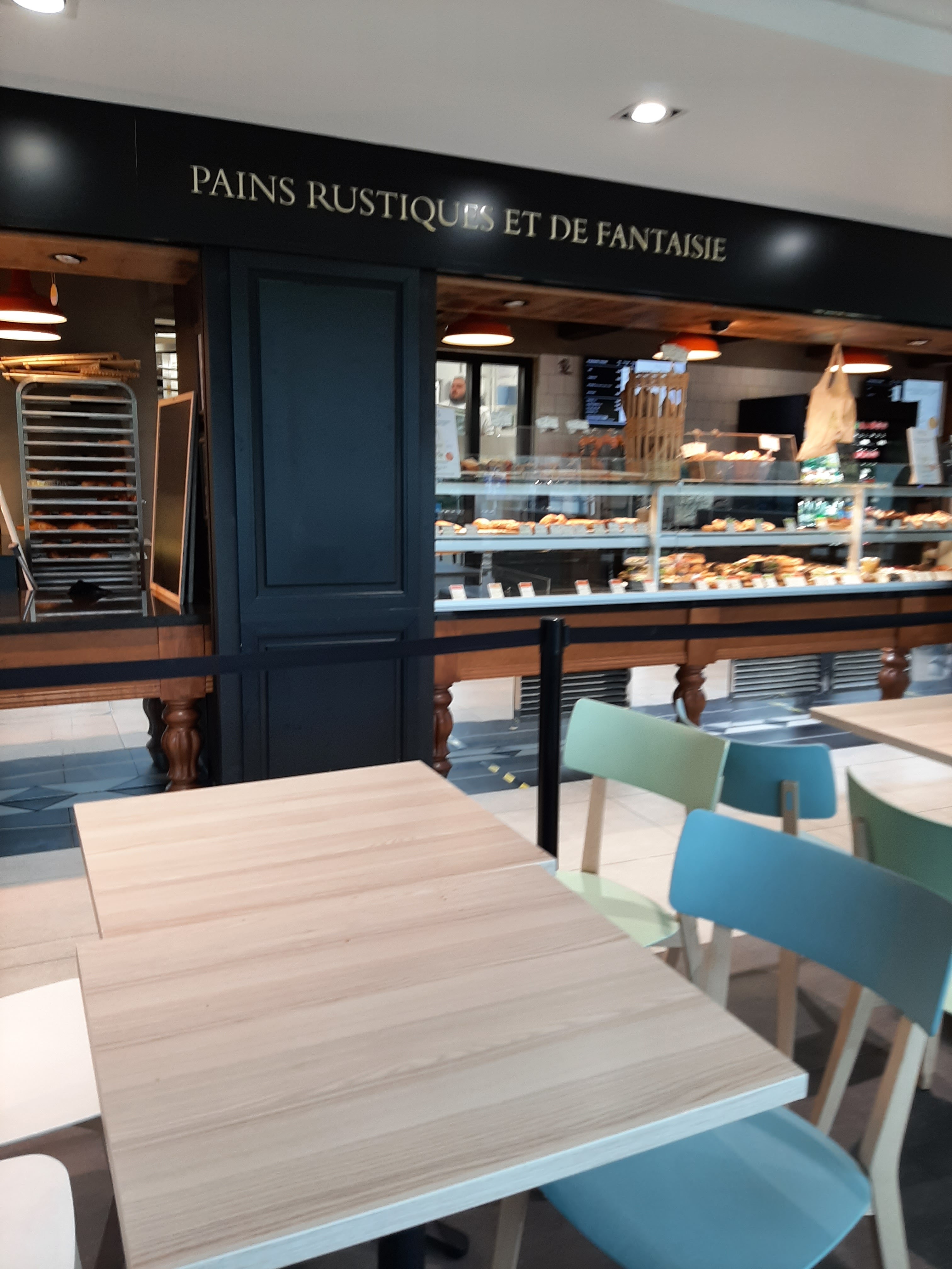 Un endroit en plein courant d'air où il fait très froid. Les produits ne sont pas ceux proposés par les autres boulangeries Paul, j'ai mangé un flan brioché au chocolat 🍫 tellement sec qu'il avait dû faire la vitrine depuis une semaine ! D'autre part, nous avons remarqué que les tables ne sont jamais nettoyées ni désinfectees ce qui est contraire aux règles COVID en vigueur actuellement. Cet établissement n'a de Paul que le nom ! Très déçu 😞 !