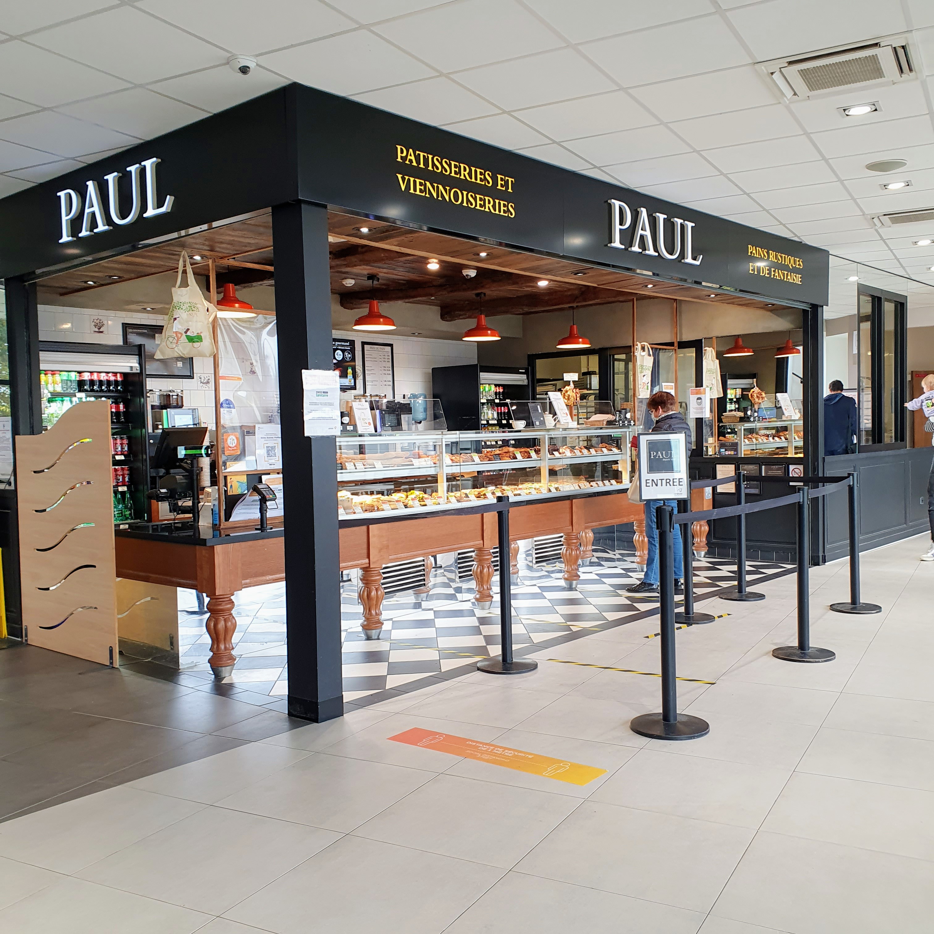 Octobre 2021. Boutique Paul correcte, avec viennoiseries pas trop grasses et de bons cafés. Bon accueil. Problème ce jour avec la porte d'entrée qui ouvre et se ferme à sa tête...mais c'est Halloween 🎃 !