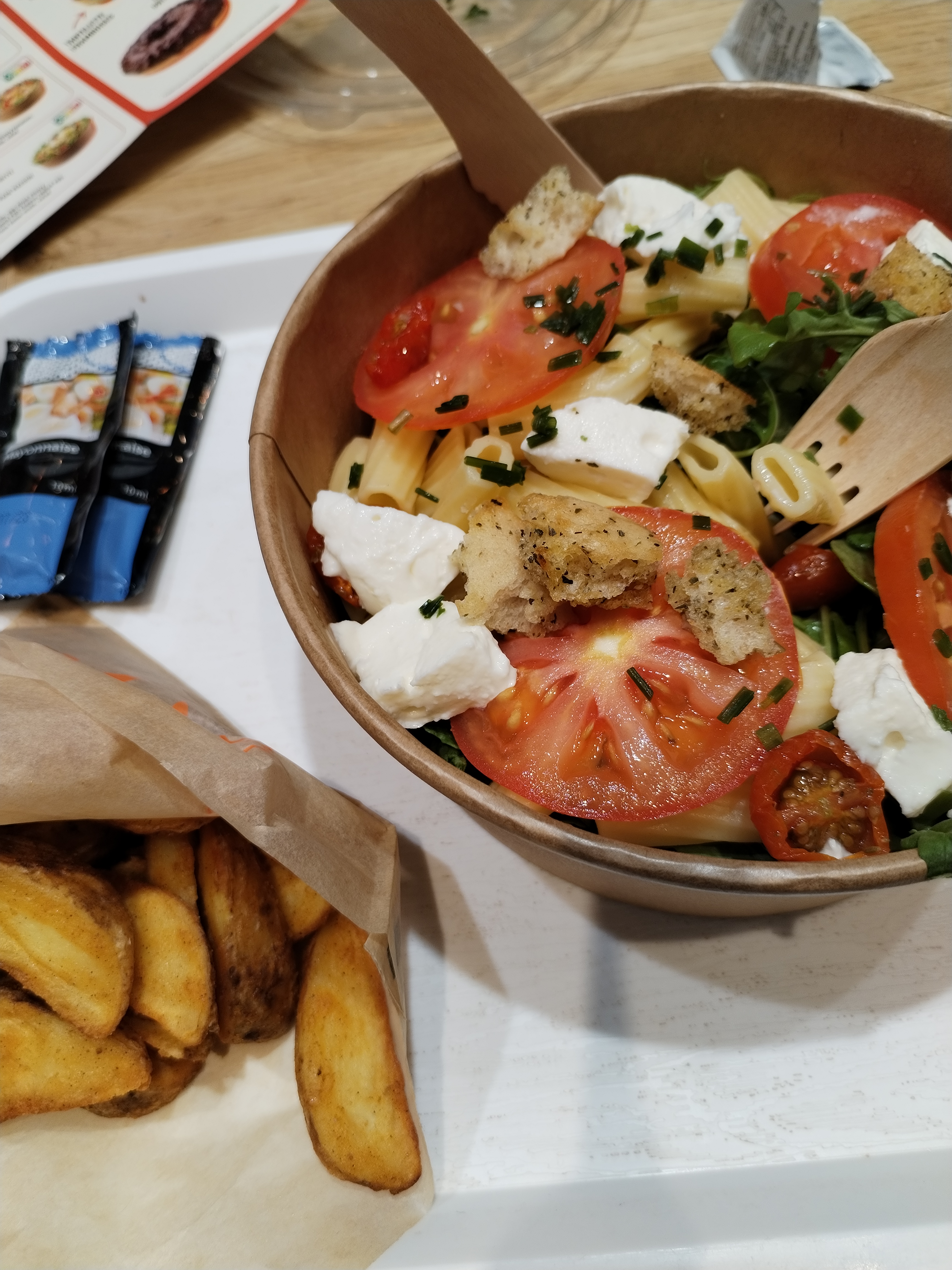 La qualité de service et produits s'est nettement dégradée ses derniers mois. J'ai été servi après 15 minutes d'attente car l'agent en caisse discutait voiture avec un livreur Uber Eat qui par ailleurs était entré à l'intérieur de la cuisine, devant les produits préparés et en préparation et le tout avec ses vêtements de livraison (vêtement civil, sans aucune protection face aux produits exposés en vitrine et dont il était très proche et sans gants) !!! J'ai tout de même acheté une salade qui à mon grand regret était impropre à la consommation. Les feuilles de salade étaient abîmées et avaient un goût de produits périmés. A fuir !