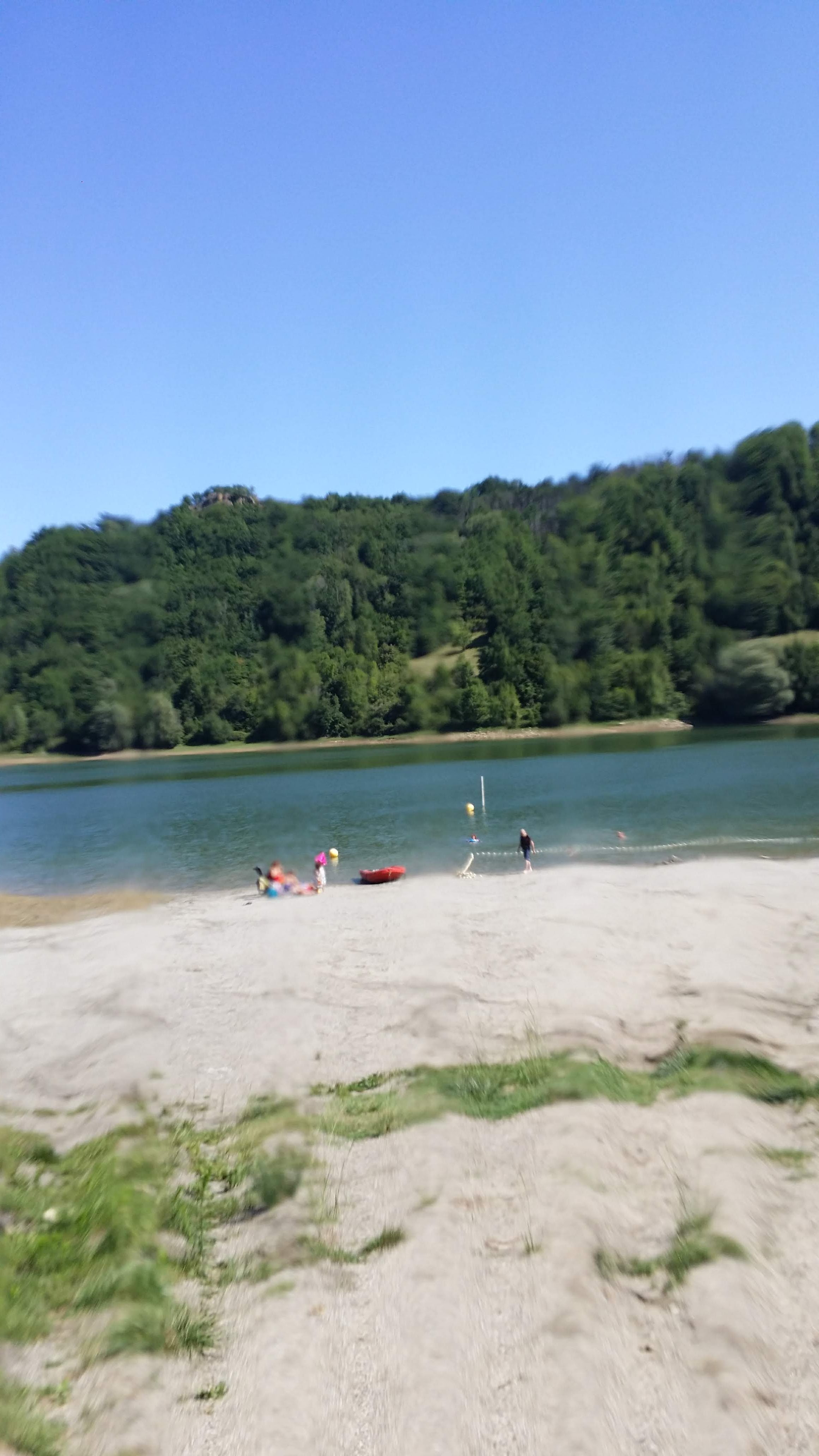 Beau lac pour se baigner. Sauveteur en service. Beaucoup de créatures à l'extérieur et dans l'eau. Le stationnement est possible, mais la route qui y mène est étroite et raide.