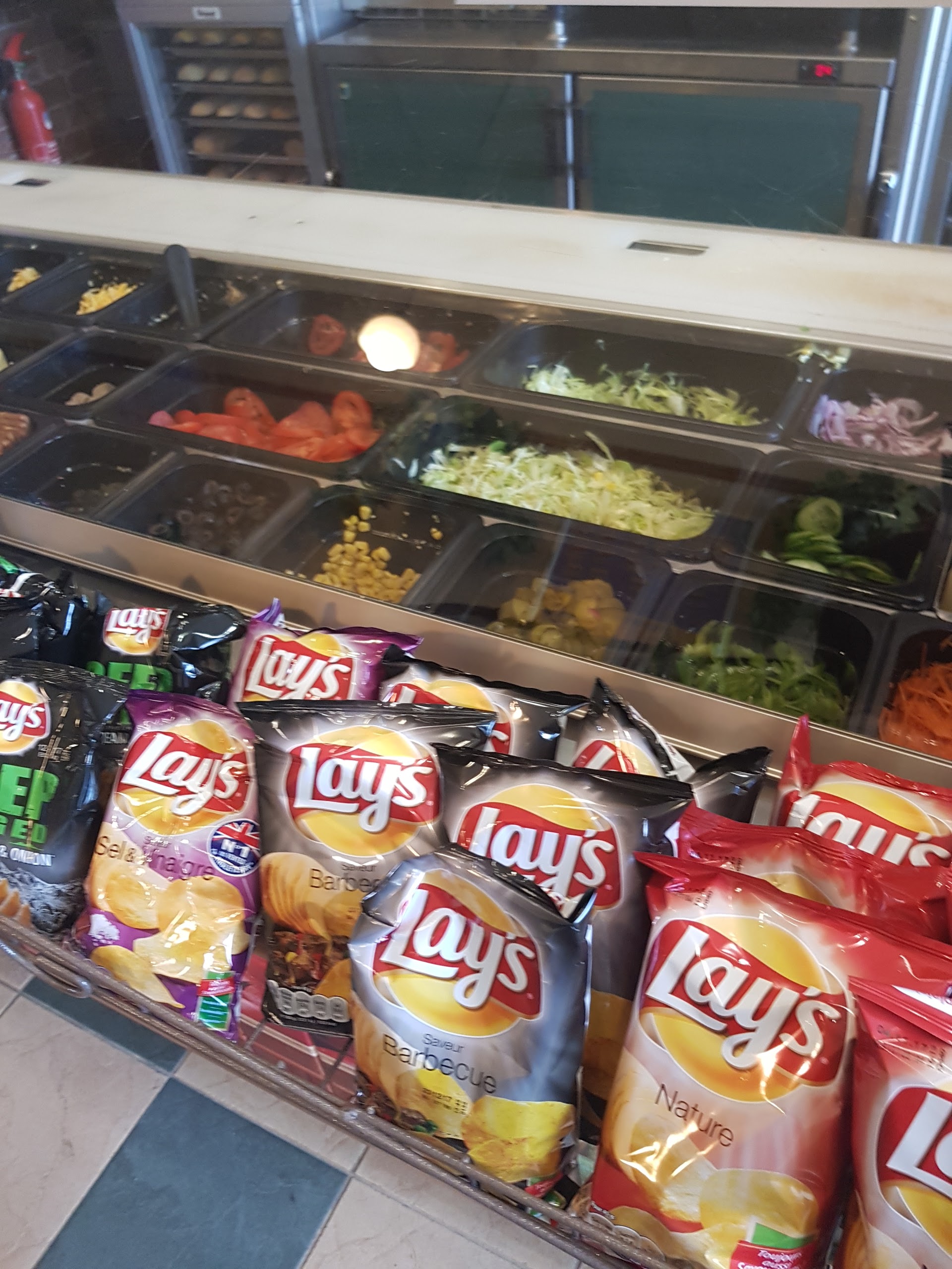 Subway propre, moderne (avec des frigos qui conservent pleinement les aliments, ce qui n’est pas le cas de tous les Subway) et qui respecte le jeu de la vaisselle réutilisable. L’hôtesse n’a pas hésité à nous rappeler ce qui était compris dans les formules et à nous présenter les offres en cours de notre programme fidélité. Les quantités sont généreuses comme il le faut et le plan de travail semblait propre ! Je recommande. Me sachant végétarienne, l’hôtesse m’a également proposé de chauffer mon Sub individuellement afin de ne pas le mélanger à la cuisson d’un Sub au poulet qui le précédait. C’était très appréciable, encore merci !