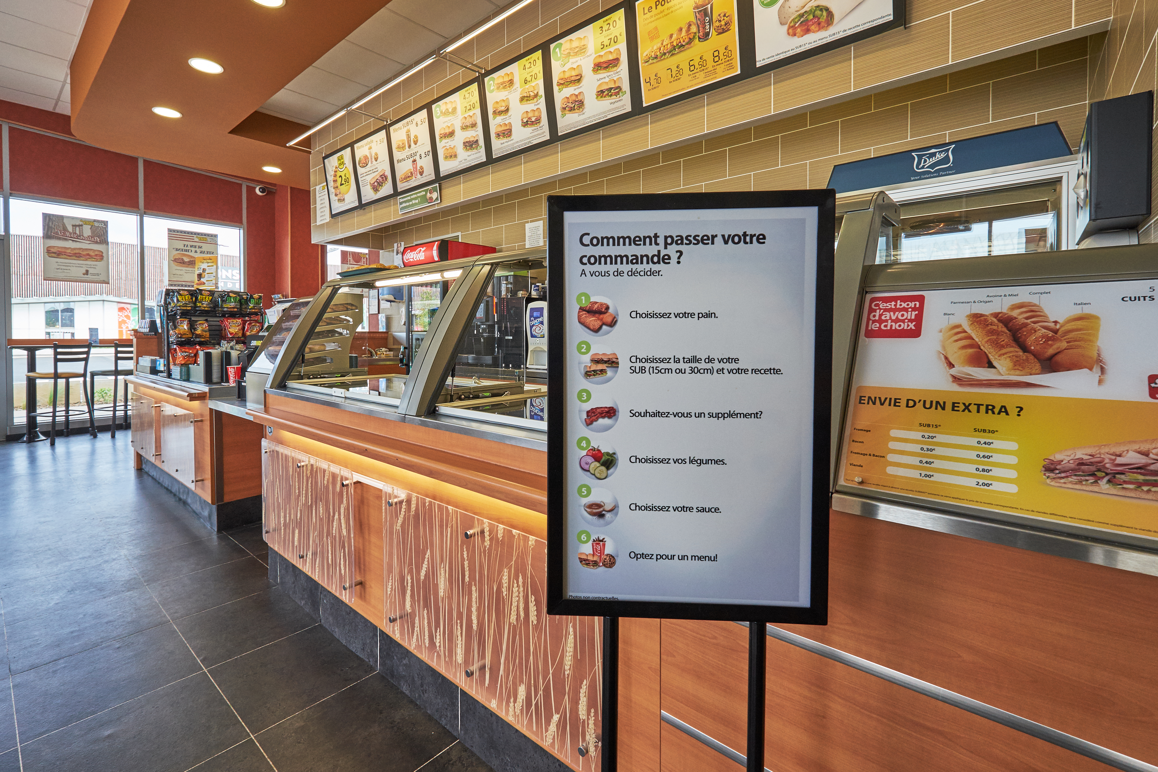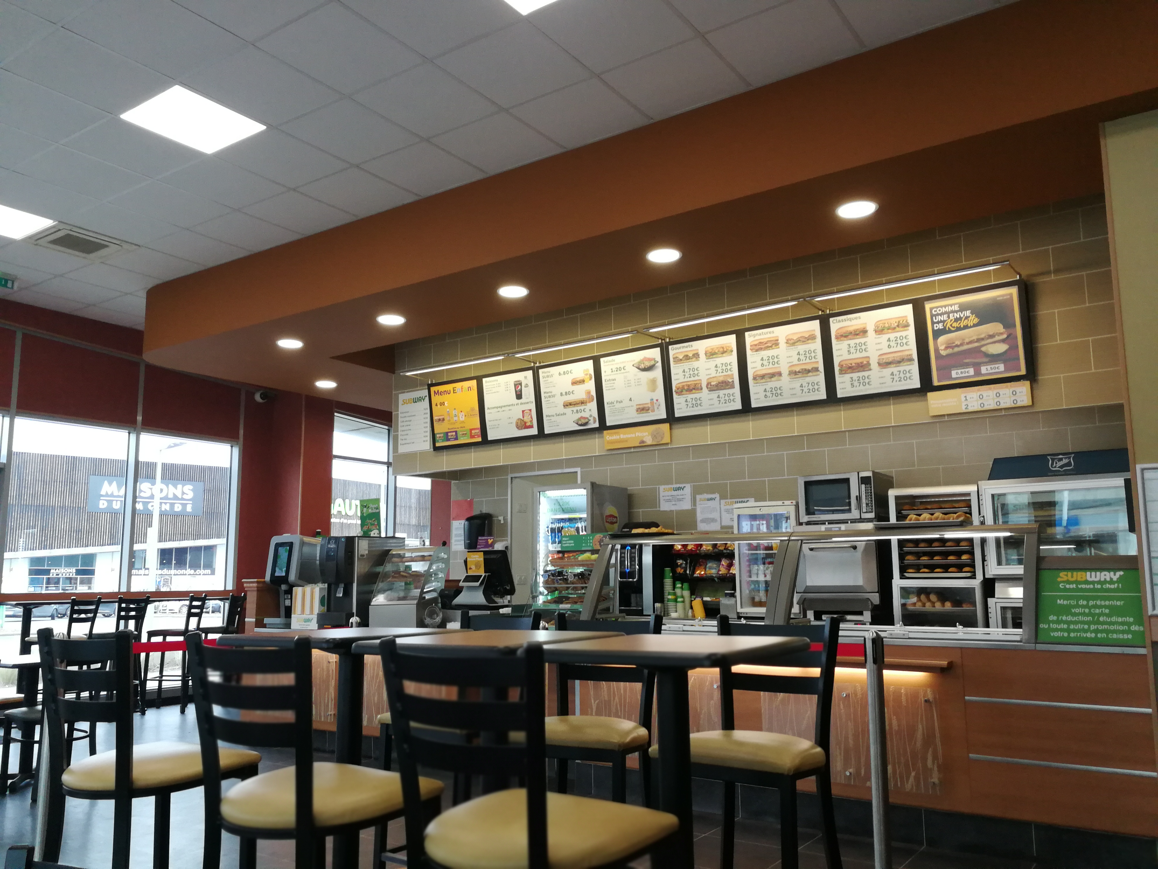 Acceuil toujours sympa, surface pour manger propre et assez grande ce qui change de beaucoup de subway. Parfait