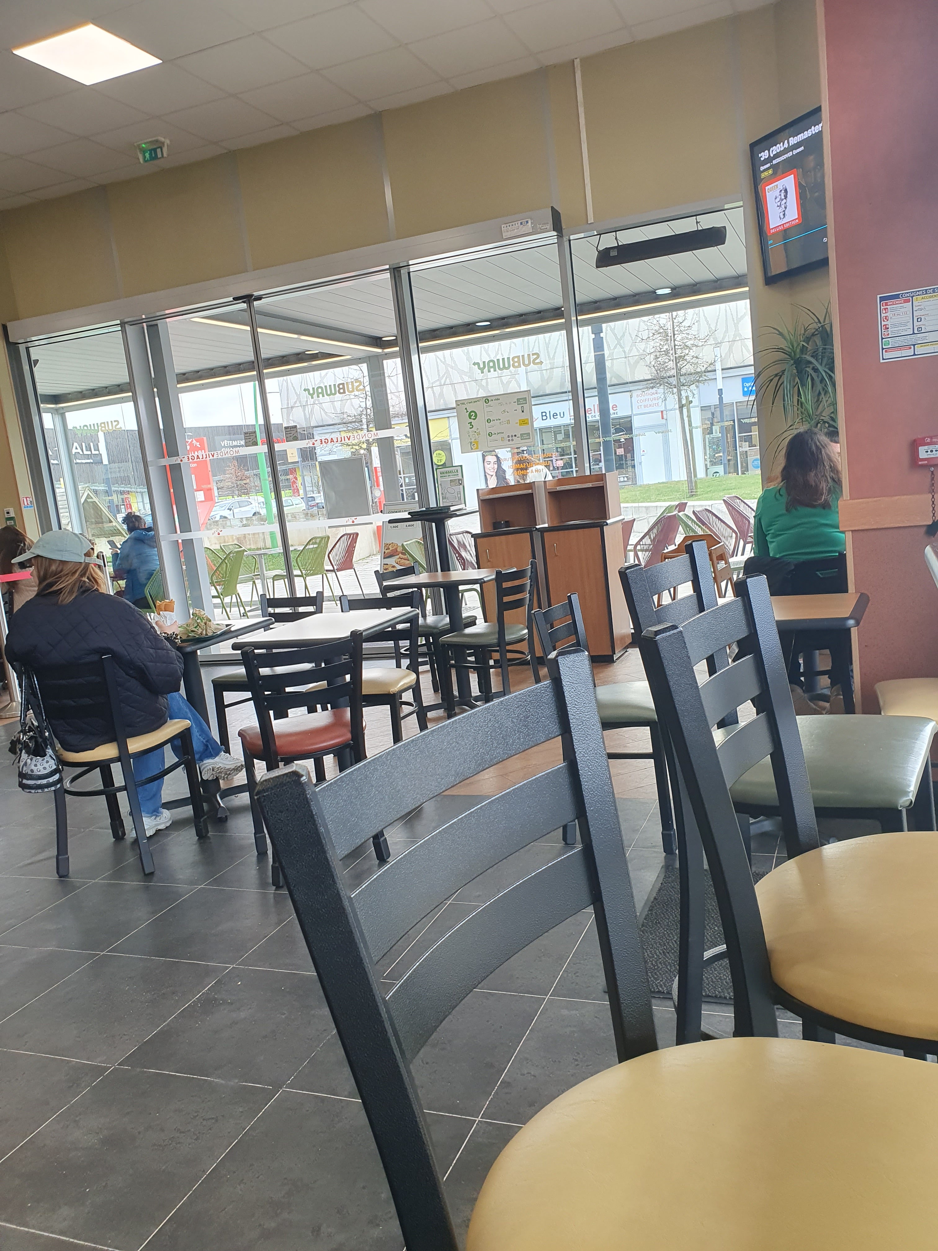 L'un des meilleurs SUBWAY de la région Caennaise !!! Belle surface de restauration bien répartie avec des chaises basses, hautes & une terrasse couverte pour les plus courageux & les fumeurs. Belle organisation & synchronisation des prodeurs et tout ça avec le sourire 😊👌👏 Nous avons pris 1 SUB 30 poulet teryaki avec fromage & crudités : un vrai régal pour les papilles 😋😋 Et pour vous faire patienter dans la file d'attente bien rodée, l'album Innuendo des Queen, un plus bien apprécié 🤗. Parking gratuit à proximité avec emplacement PMR & toilettes publiques gratuites. Accès PMR. WC.