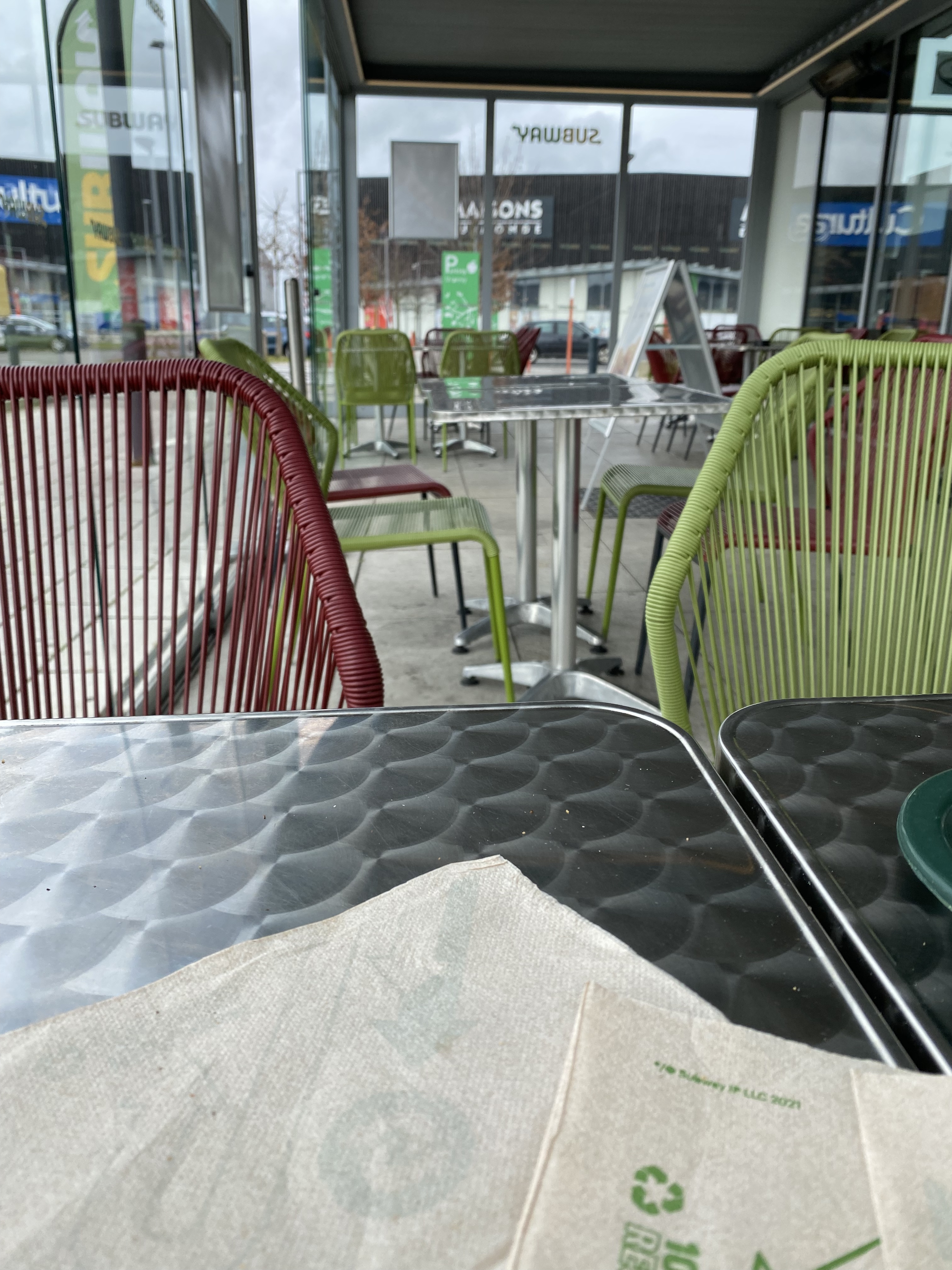 Nous nous sommes rendu dans le subway de mondeville, étant habituée à celui d'herouville, celui ci ne m'as pas fait bonne impression. Les bacs où la nourriture était déposés était sales avec de l'emmental râpé... Les légumes n'avais pas l'air très frais, la vendeuse n'avais pas l'air très aimable, quand au vendeur, il étais hautain, me conseillant même de dépenser mes points dans un autre subway que dans le sien. Tables sales tout comme le reste du restaurant. Une chose est sûr, je ne remettrais pas les pieds dans celui ci. À fuir....