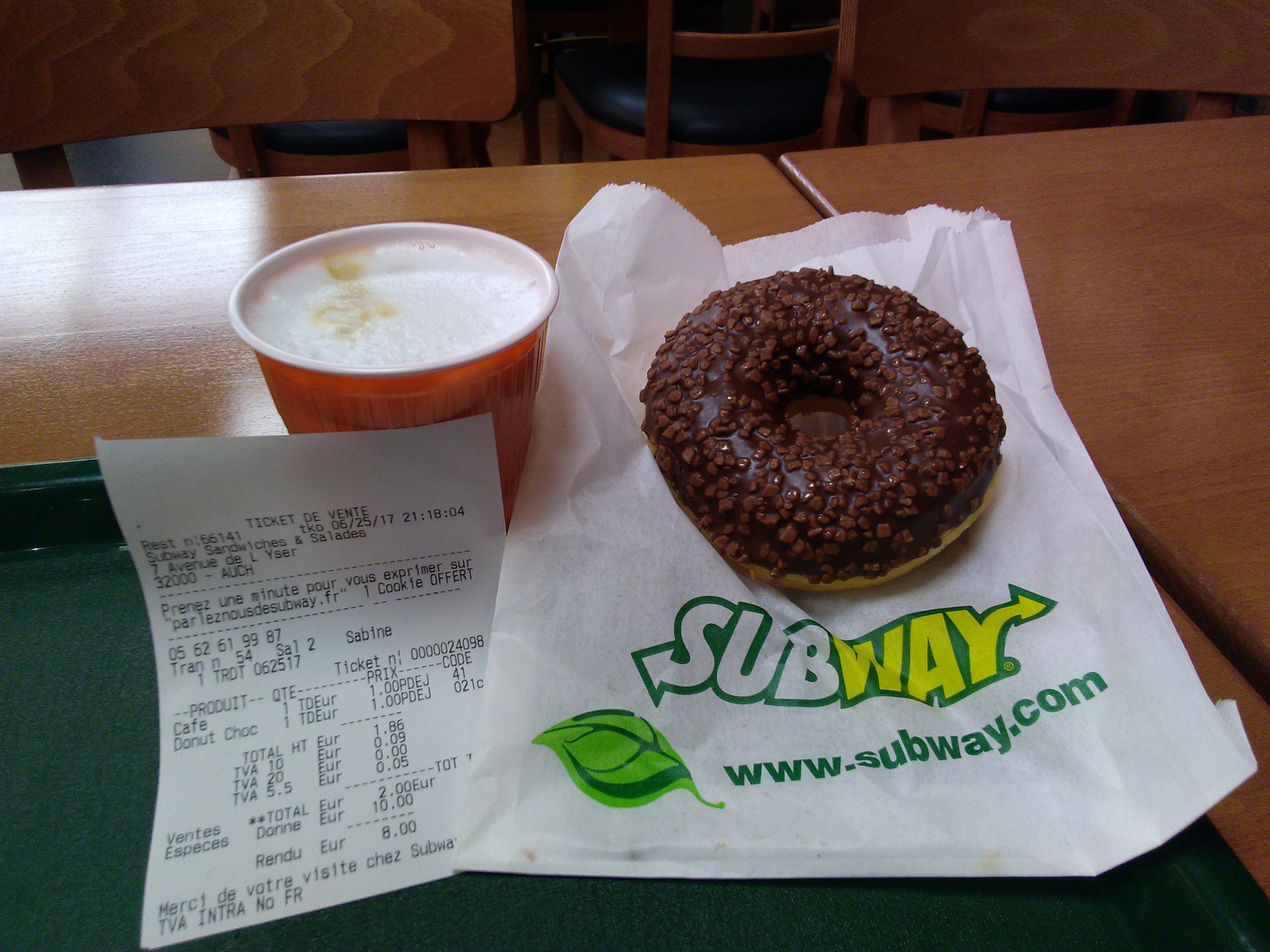 Subway donc pas de surprise mais excellent accueil avec le sourire