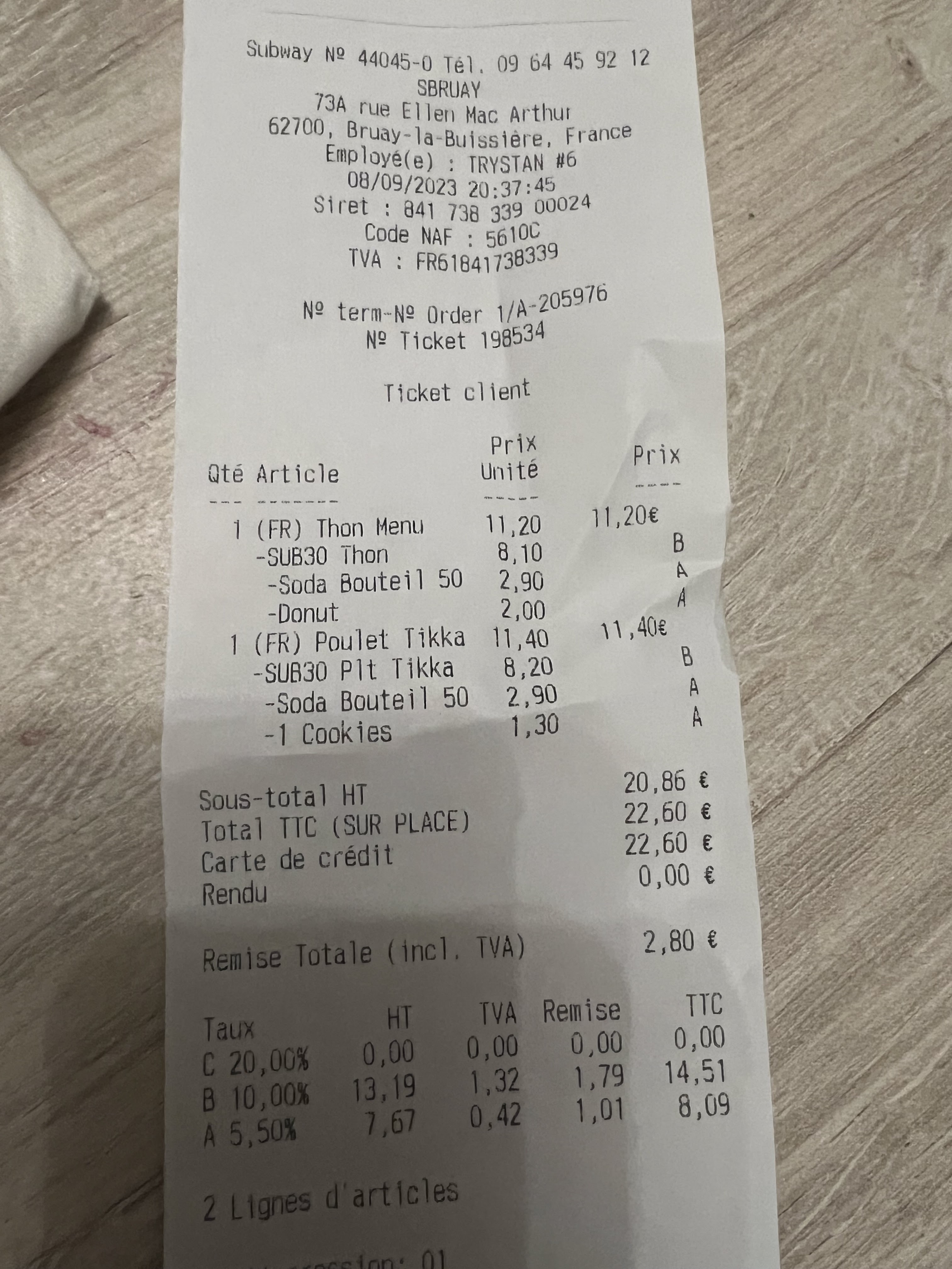 Bonjour Lucie G , Nous sommes navré d'apprendre que vous n'avez pas reçu l'accueil et l'experience globale que vous étiez en droit d'attendre. Nous attachons une attention toute particulière à ce que chaque client soit accueilli et servi dans le plus grand respect de nos valeurs de marque. Notre priorité N°1 est de vous satisfaire et que vous passiez un agréable moment dans notre établissement. Nous allons de suite revoir ces points essentiels et les corriger avec les équipes du restaurant. Merci d'avoir pris le temps de partager votre expérience, nous espérons vous revoir très vite dans nos restaurants Subway ! Cordialement, L'équipe Subway