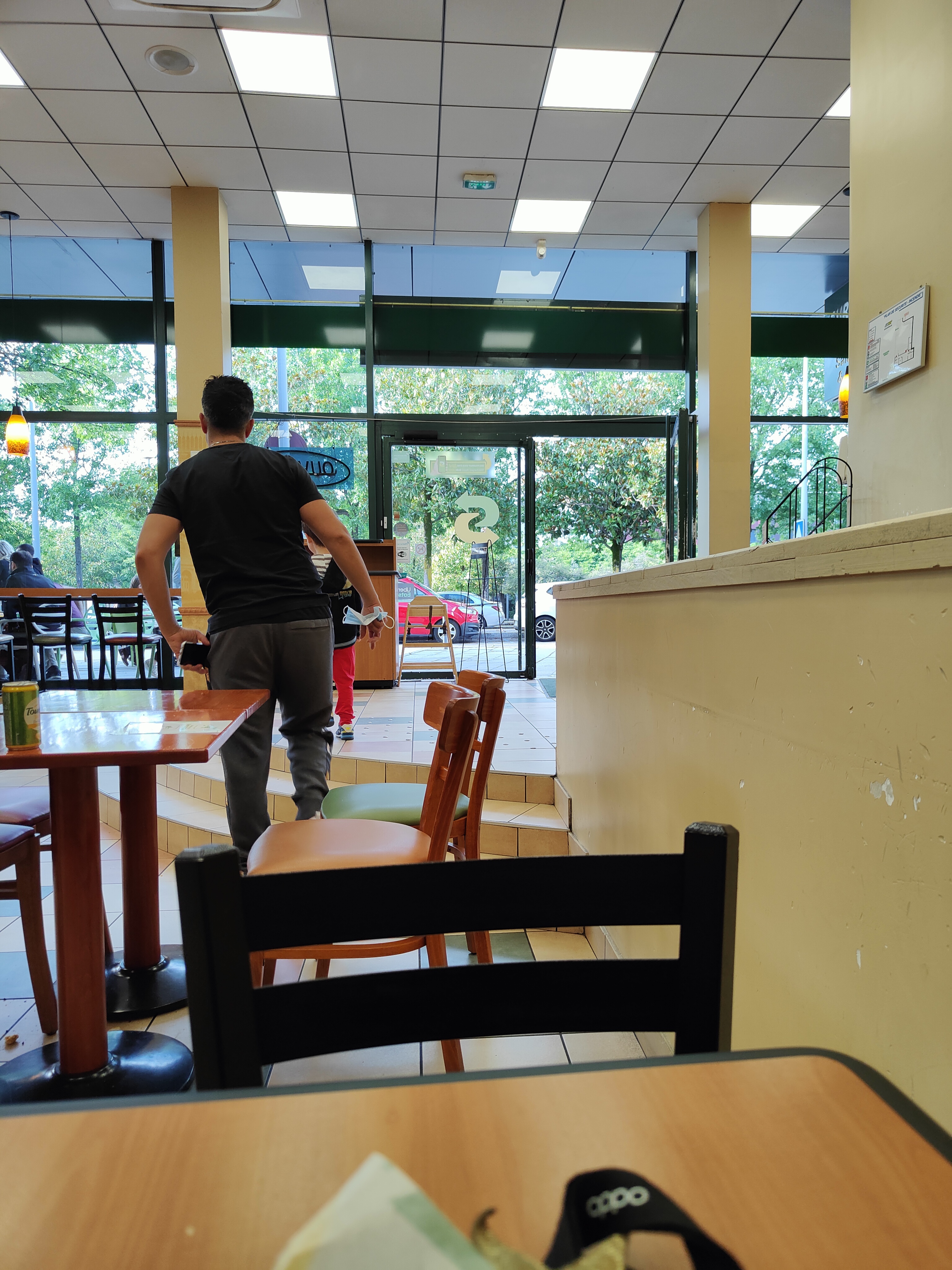 Personnel peu agréable, les prix augmentes toujours un peu plus et les promos sont du grand n’importe quoi... on nous fait payer un sandwich seul plus cher que la promo qui inclus 2 produits en plus du sandwish...