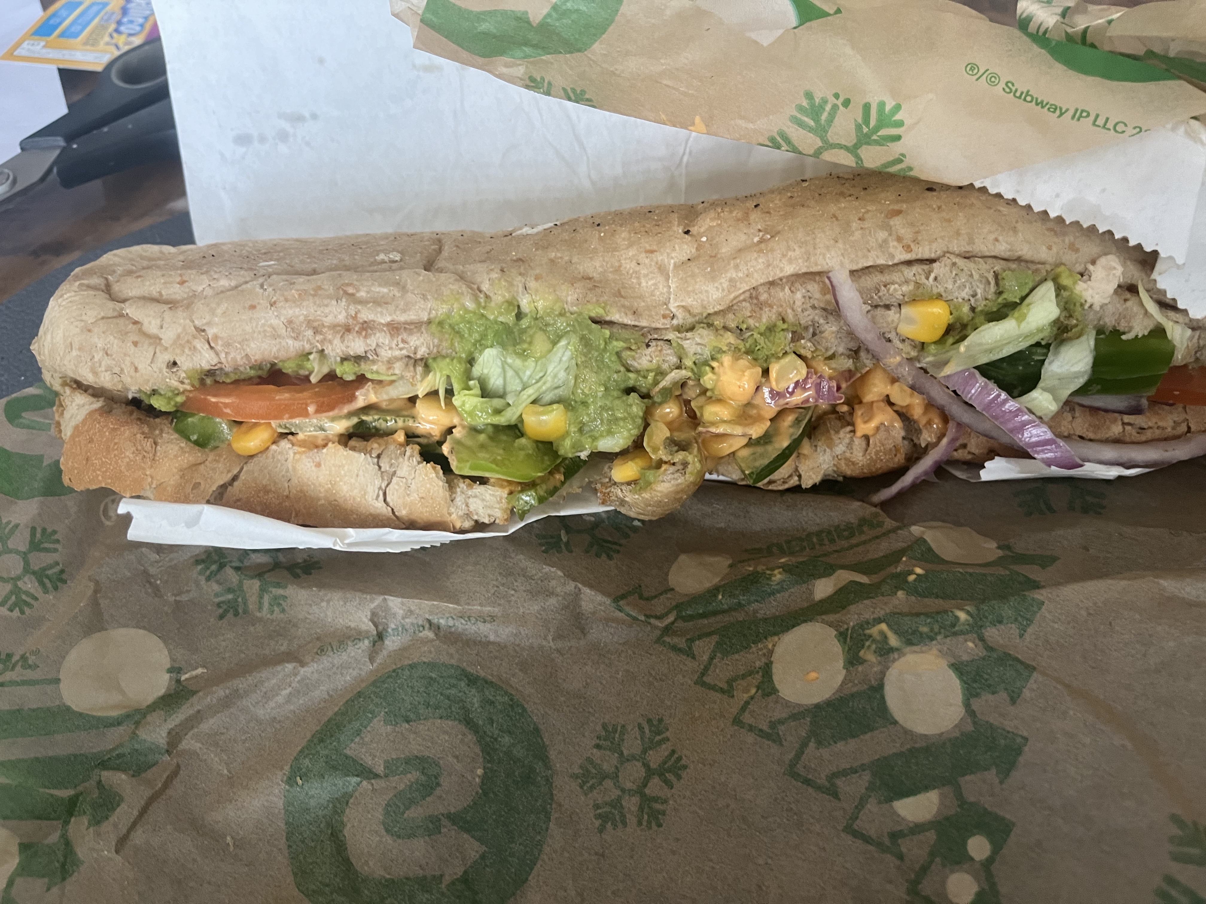 C'est rare que je dise quelque chose sur un subway. Mais quantité de légumes vraiment inférieur. 3 grain de maïs en duel quelque carotte, je suis étonné par la motivation de la personne qui ne souriait même pas.