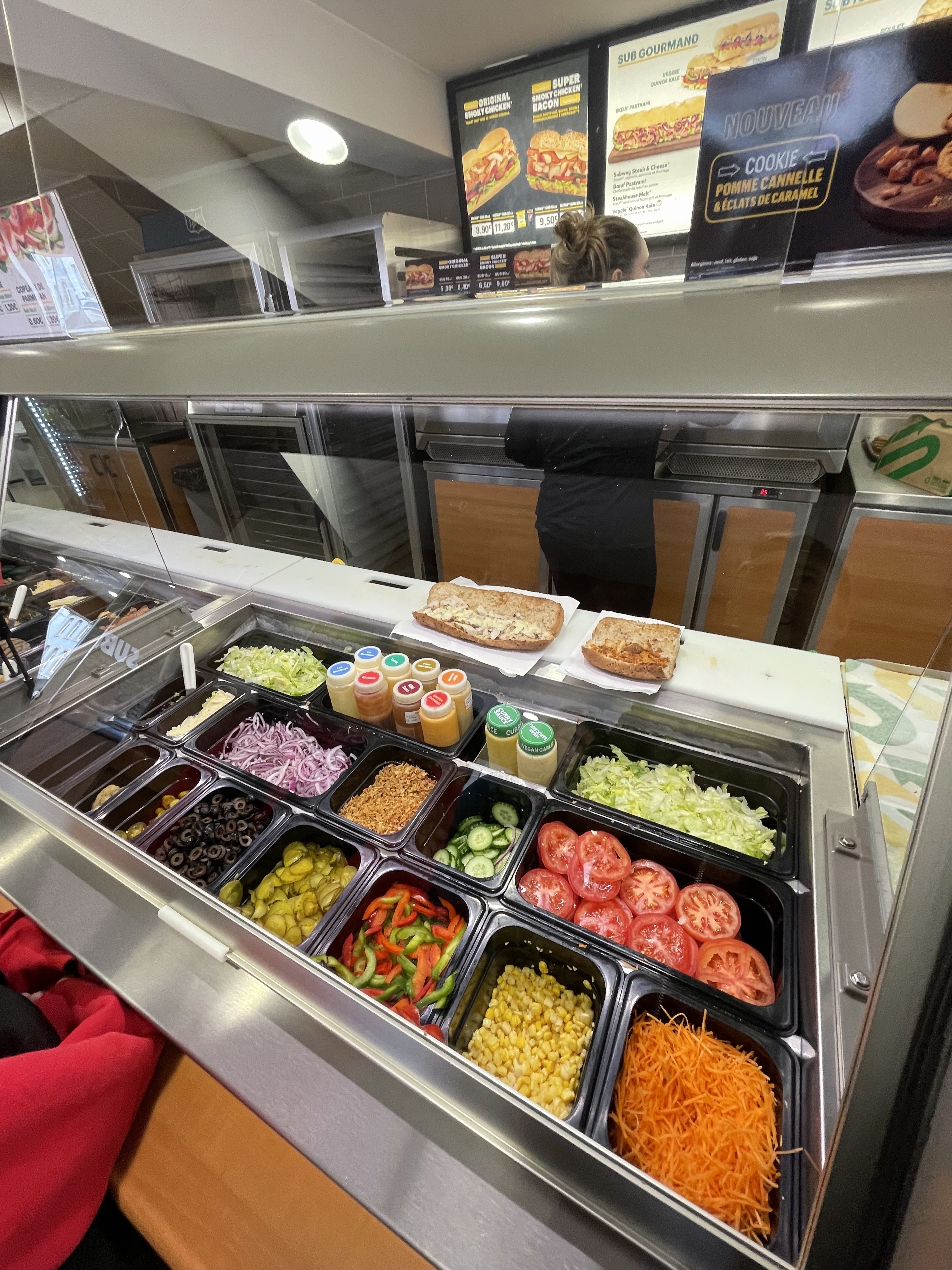 Je vais très souvent manger dans cet enseigne qui et pour moi la meilleur chaîne de restauration rapide les produits sont frais et très bon différent Pain avec beaucoup de choix de légume et beaucoup de choix de viande (poulet,jambon) et les sauce pareil beaucoup de choix en plus pas gras du tout leger ce que j aime le plus dans cet enseigne c est que c est toi qui compose ton sandwich toi même est ca c est top
