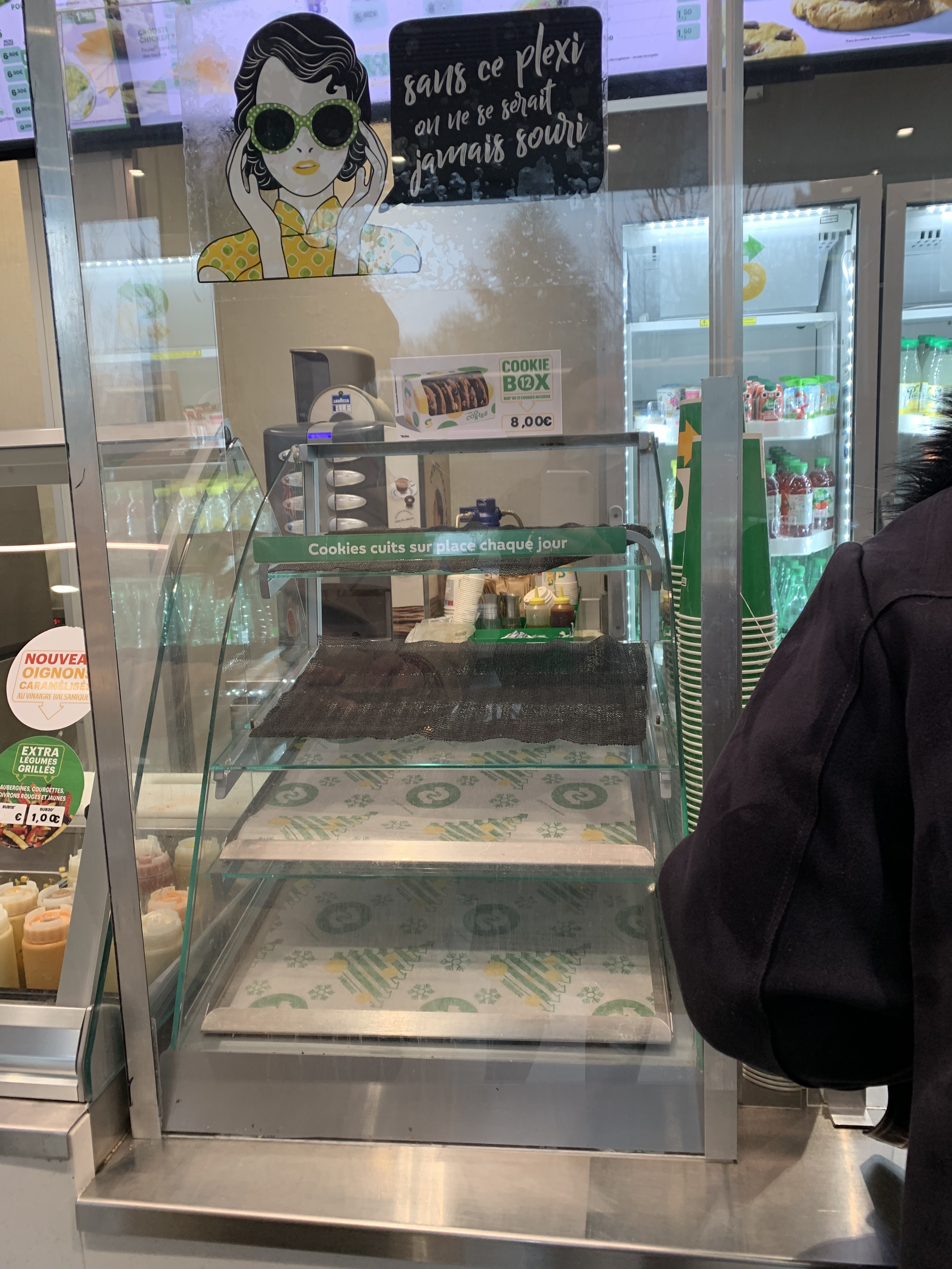 Bonjour StreetFeelGaming , Merci d'avoir pris le temps de nous contacter. Nous sommes désolés d'apprendre que vous avez vécu une expérience décevante dans votre restaurant Subway®. Nous accordons une grande importance au confort et à la propreté des restaurants. Chez Subway®, notre objectif est de satisfaire ou dépasser les attentes de chaque client, à chaque fois. Les commentaires tels que le vôtre nous poussent à toujours mieux former / sensibiliser les équipiers et apporter des correctifs immédiats selon nos procédures de fin de journée afin d'offrir une expérience unique à tous nos clients quelque soit l'heure de leur passage. Nous vous remercions de nous avoir fait part de votre avis et nous espérons vous revoir bientôt chez Subway®. Cordialement, L'équipe Subway