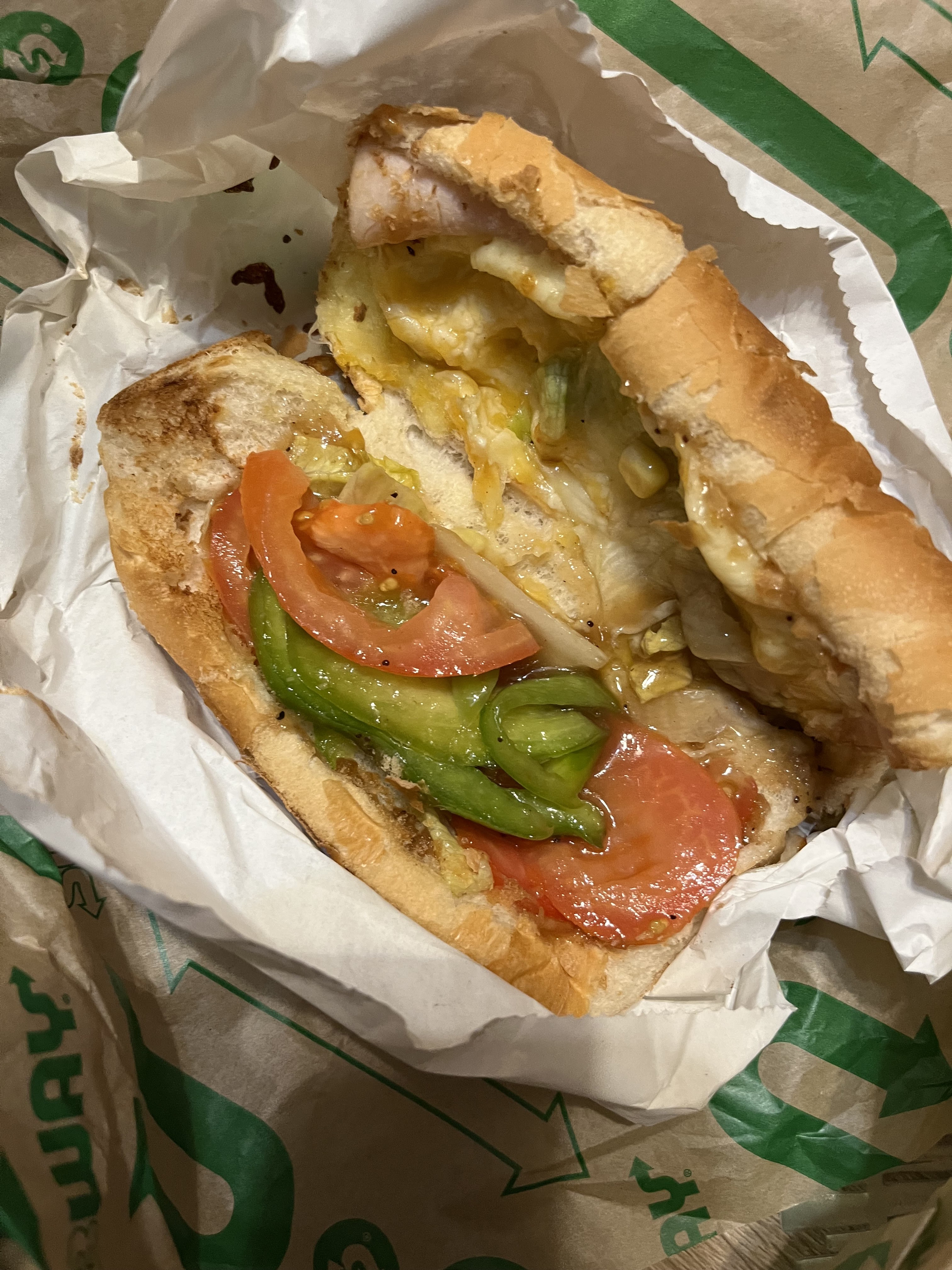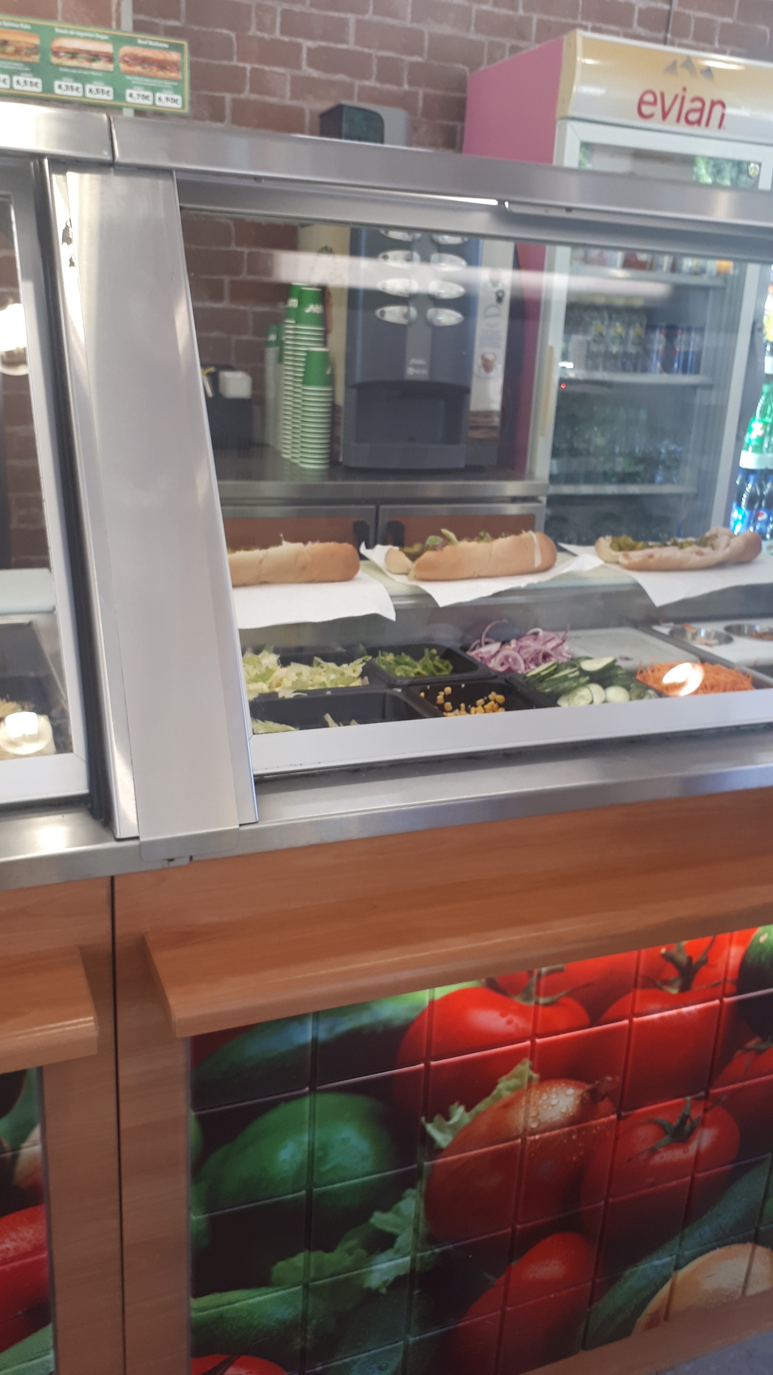 Affligeant! Nous sommes arrivés à 21h30 le resto ferme à 23h. Tout commence par l'accueil du staff en grande pompe avec le choix du pain des plus agressif. Ensuite on continu avec une demande qu'il faudrait retirer de la carte : pizziola & meetball car peu importe le jour où l heure il n'y en a jamais dans ce subway! Ensuite une fois le choix fait, 2nd personne du staff qui laisse nos menus sortant du four sur le comptoir car urgent de remplir le réfrigérateur (plein a plus de 90%) avec une rapidité digne d'un escargot sans adhérence au sol. Ensuite choix de l'espace dans le resto limité une zone où se trouvaient deux personnes était condamné pour le restant de la soiree ! Nous nous sommes retrouvés à une table à côté de la porte ou se trouve la clim. Aucun respect du personnel prenant sa pause clup qui ne refermé pas la porte bien qu'un mot soit inscrit dessus pour le respect de l'utilisation de la clim... De pire en pire dans ce resto...