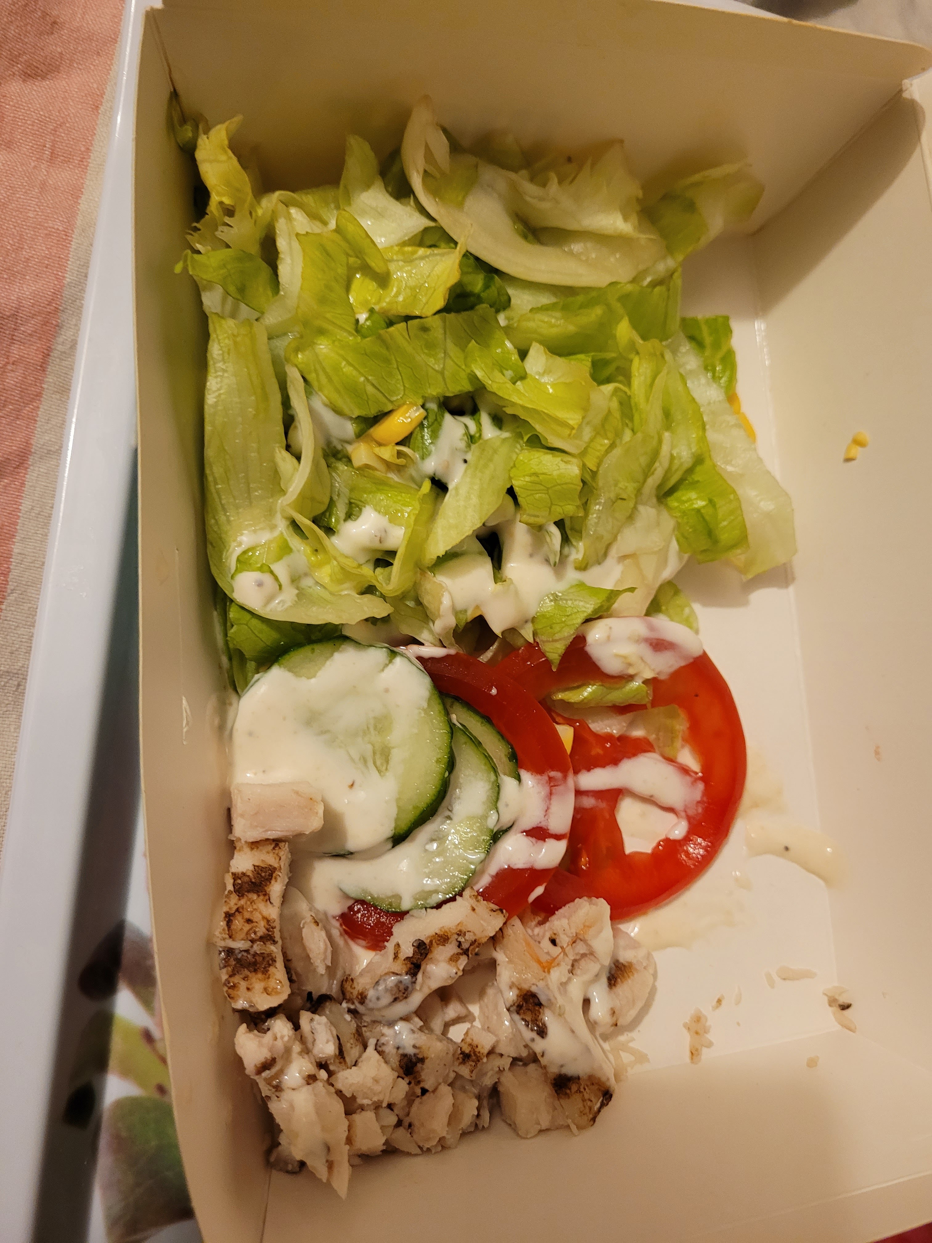 Nous arrivons avec mon conjoint à 21h pour une fermeture à 22h Personnel très désagréable, nous faisant comprendre que l’heure a laquelle on arrive les dérange, Si vous connaissez l’air guitare sachez que ce restaurant pratique l’air garniture, peu de poulet peu de fromage et en plus de nous faire payer un supplément pour du râpé je pense pouvoir compter les brindilles de râpe tellement il y en avant peu … après avoir demandé si je pouvais avoir un peu plus de salade on m’a rajouter deux petits bouts en soufflant… et c’était la même expérience pour les gens derrière nous…enfin bref que se soit au niveau de la politesse, l’accueil ou encore la garniture et même la propreté… il est a fuir !