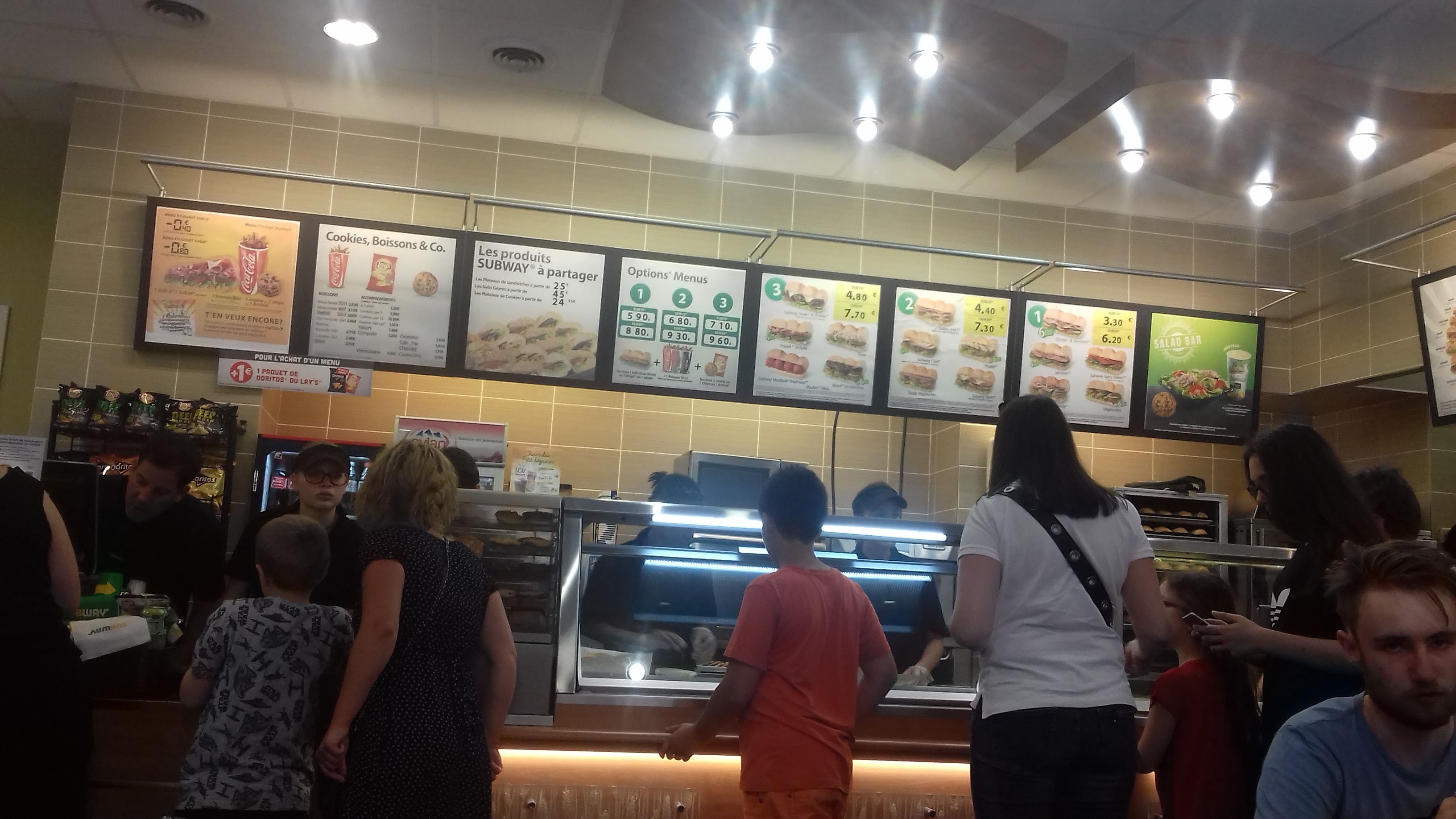 J'ai essayé le subway un mètre avec des potes et franchement ont est un peu décu on s'attendait a quelque chose de plus grand quand même mais sinon il était bon et les autres menus normaux sont aussi excellent. La grande variété de choix aux niveaux des ingrédients est vraiment une très bonne chose.