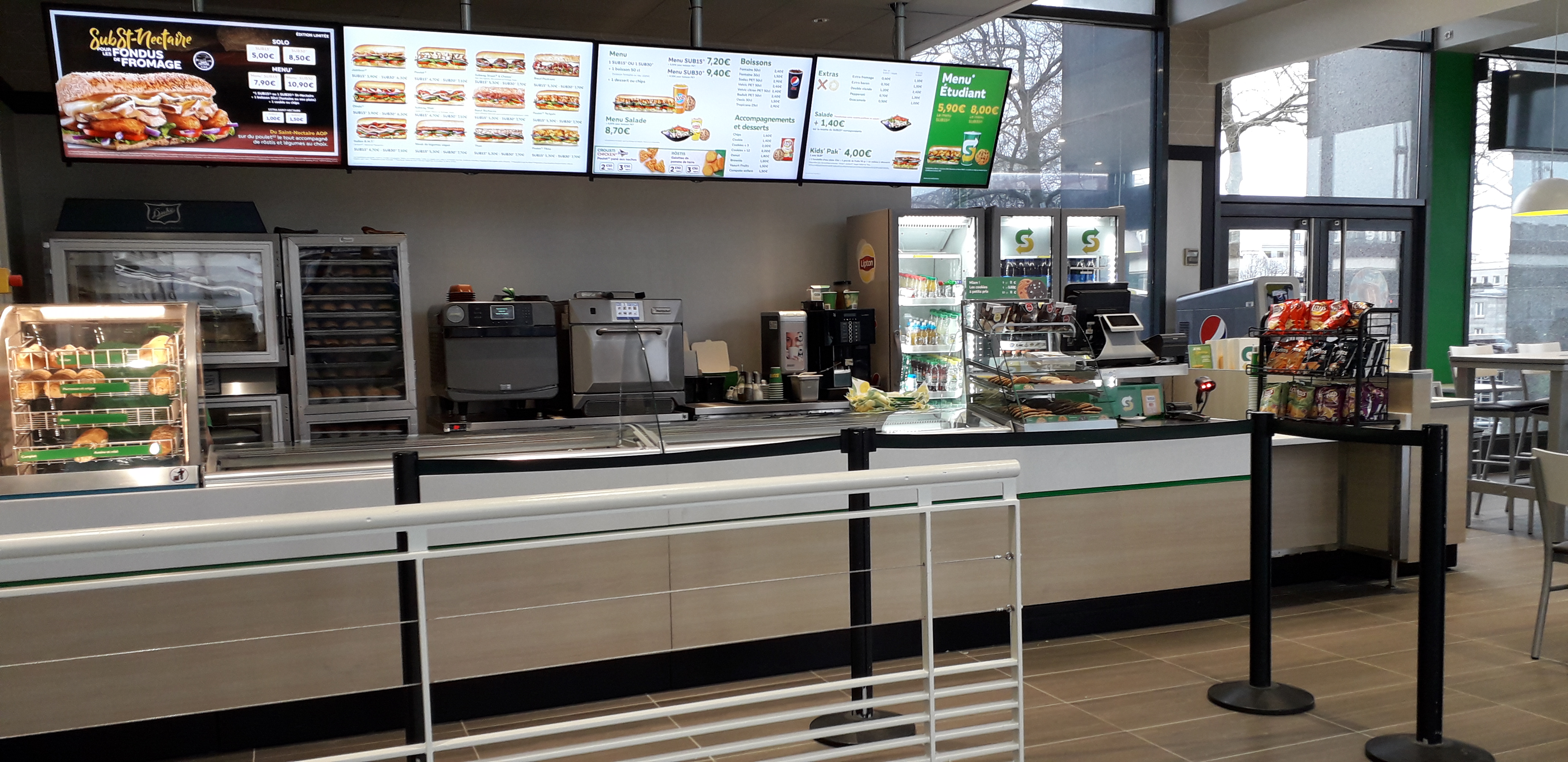 L’hygiene est bien respecté et le service rapide. Mais c’est asser dérangeant de devoir ce mettre sur la pointe des pieds pour pouvoir dire qu’est ce qu’on souhaite mettre dans notre sub. Les filles sont souriantes et gentilles. Mais le type basé en caisse est bien désagréable !