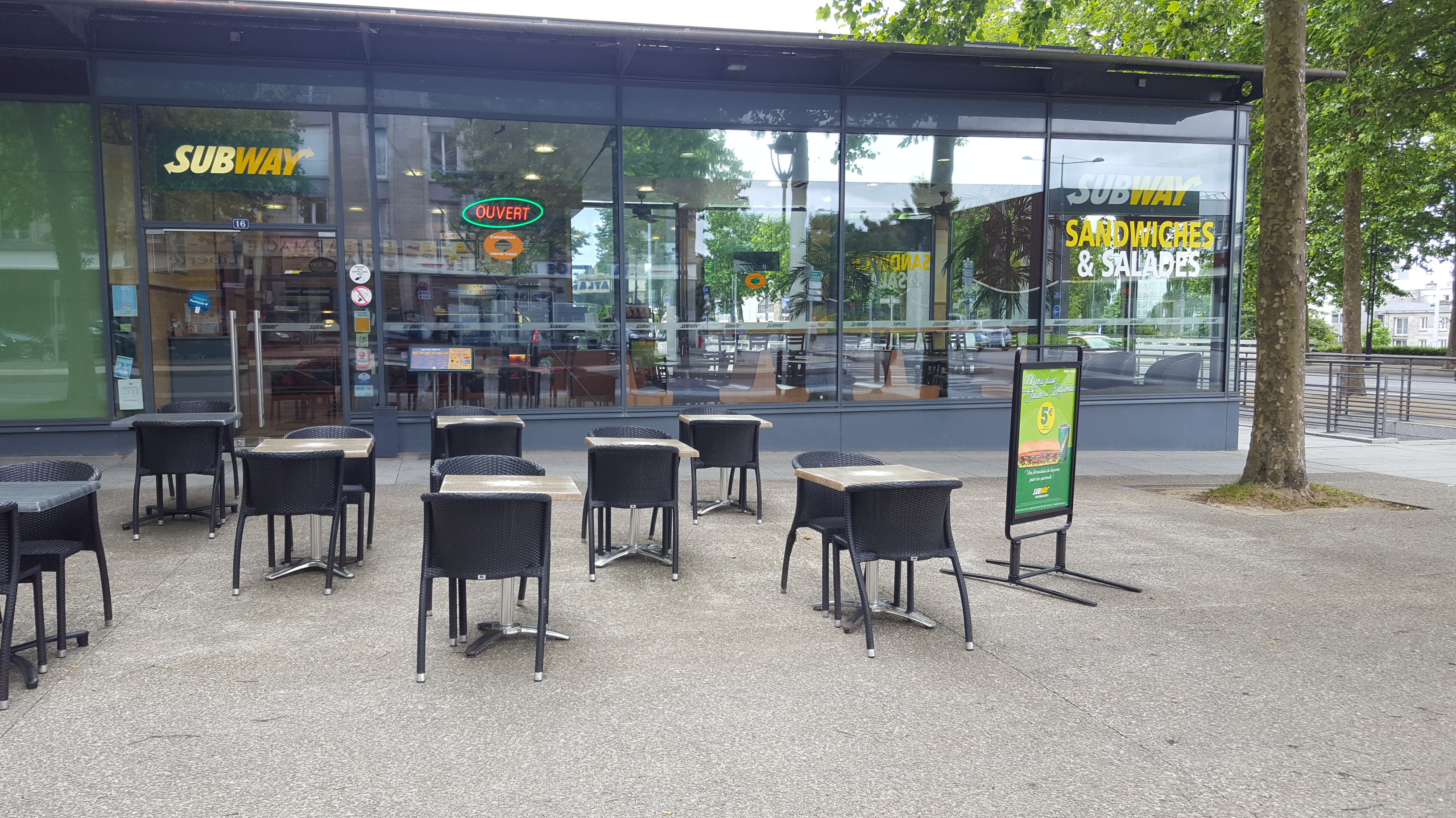 de passage a brest pour week end prolonger je passe devant le magasin moi et mes amis on se dit aller on y va accueil deja pas terrible resto presque vide a 12h45 prise de commande la personne ne demande ce que l'on veut genre agacé on s'installe table pas nettoyer surement apres passage d'autres personnes table bancale boisson faut aller se servir en mettant le gobelet dans le bon sens garniture vraiement le minimumu faut pas en mettre trop mdr comparé a quimper je dirais que ce subway et juste a eviter deja cote personnel pas trop sympa vous aimez pas bosser chez subway change de travail et ensuite les prix mais ouha inflation quoi non mdr