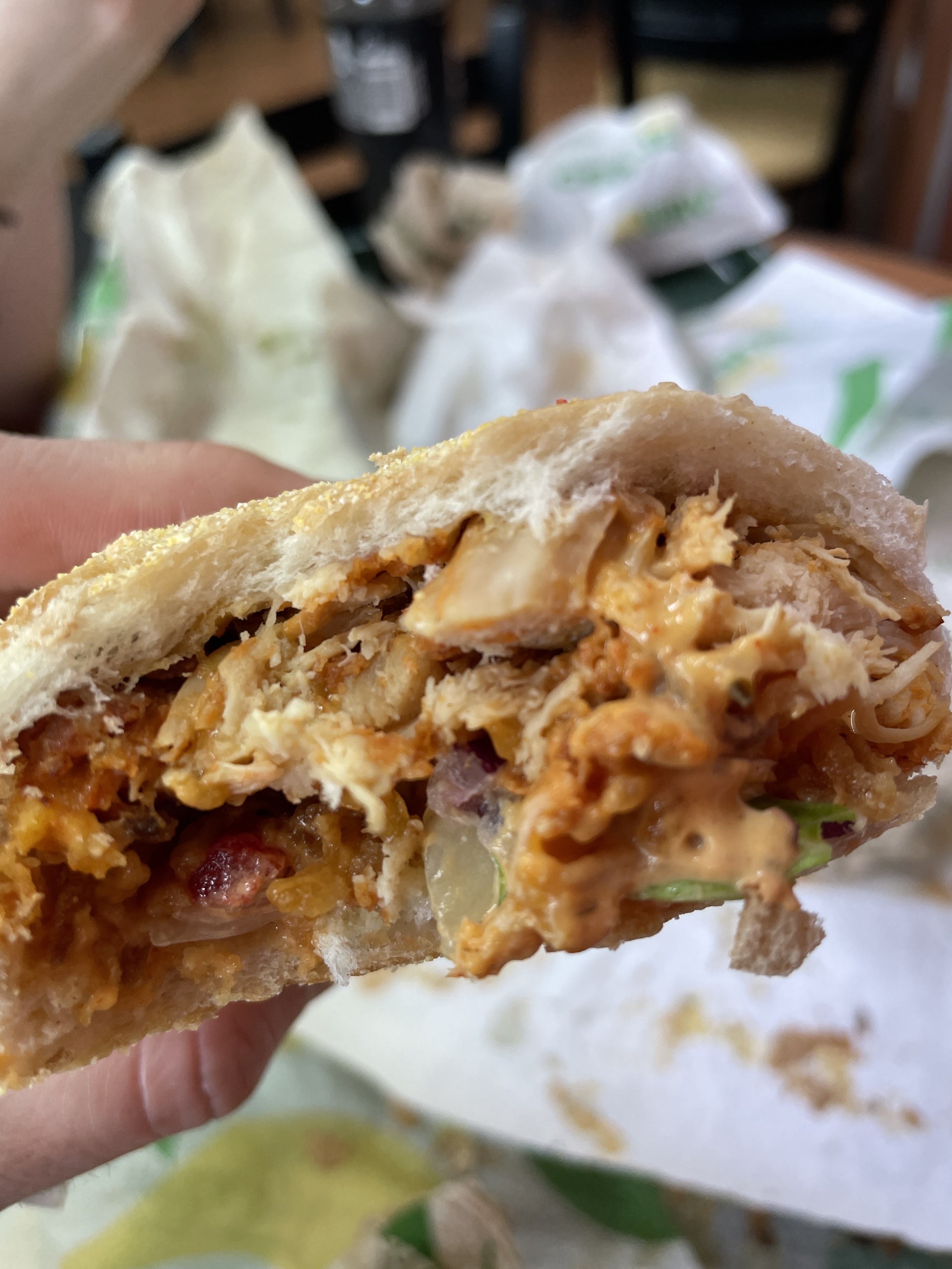 Ce n'est pas mon premier Subway, mais énorme déception ici. Grosse intoxication alimentaire : fièvre, vomissements et diarrhée après mon passage chez eux hier soir. Je ne mettrais plus jamais les pieds là-bas.