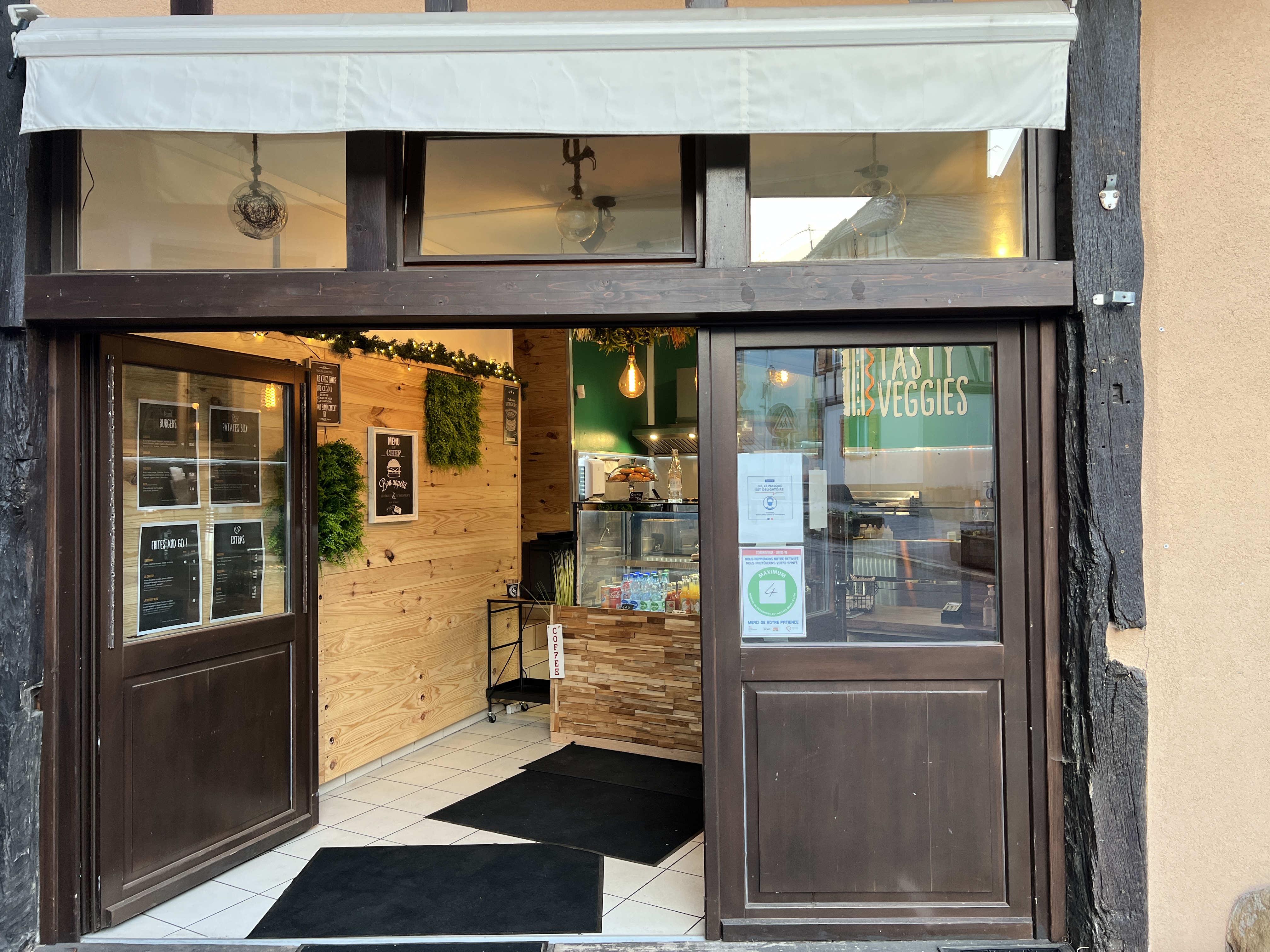 Un petit lieu de restauration, humble et pétillant situé le long de l'artère principale d'Eguisheim où Maxime, aux commandes, vous servira des mets végétariens frais et délicieux. Vous le trouverez, derrière son comptoir et sa cuisine, arborant un franc sourire, sa joie et sa gaieté de cœur qu'il saura vous communiquer. Animé par sa passion et armé de ses outils de travail, il vous proposera des produits locaux qui varient selon les saisons et les envies. N'hésitez pas à faire un tour sur les réseaux sociaux de la boutique. Mais surtout: Régalez-vous !